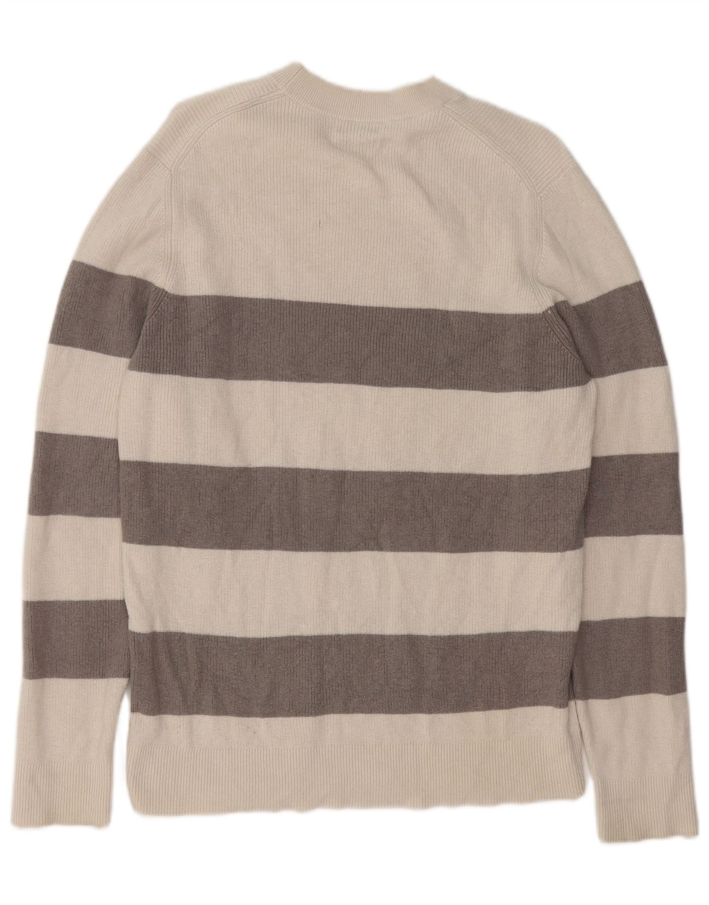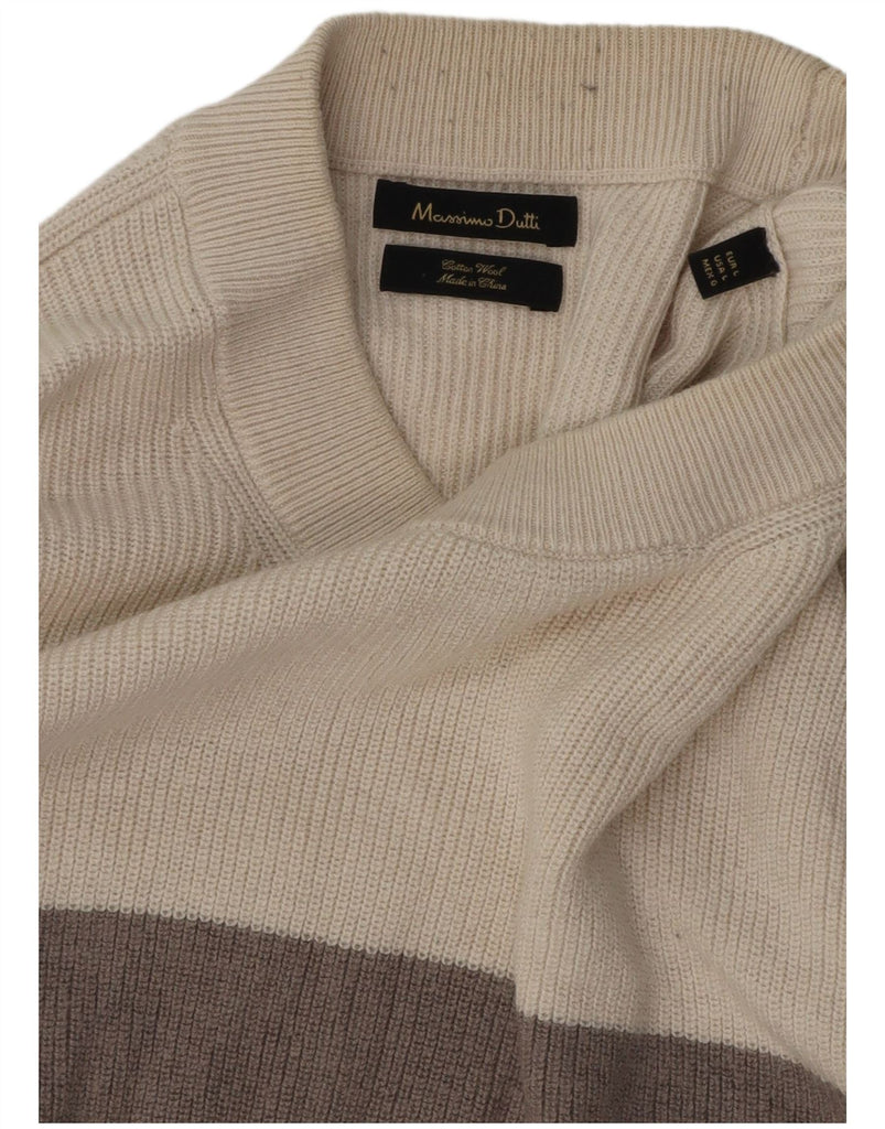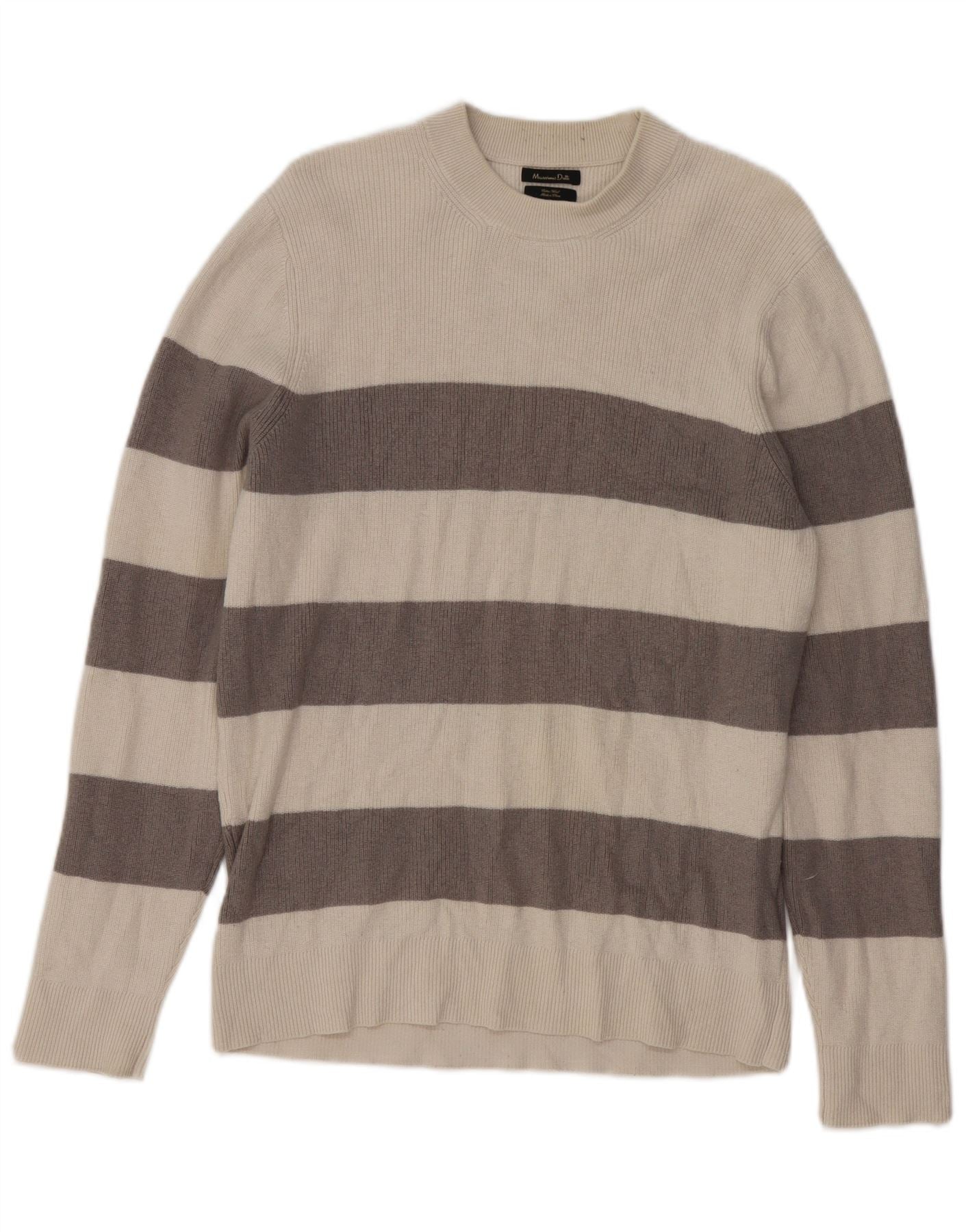 MASSIMO DUTTI Mens Crew Neck Jumper Sweater Large Beige Striped Cotton