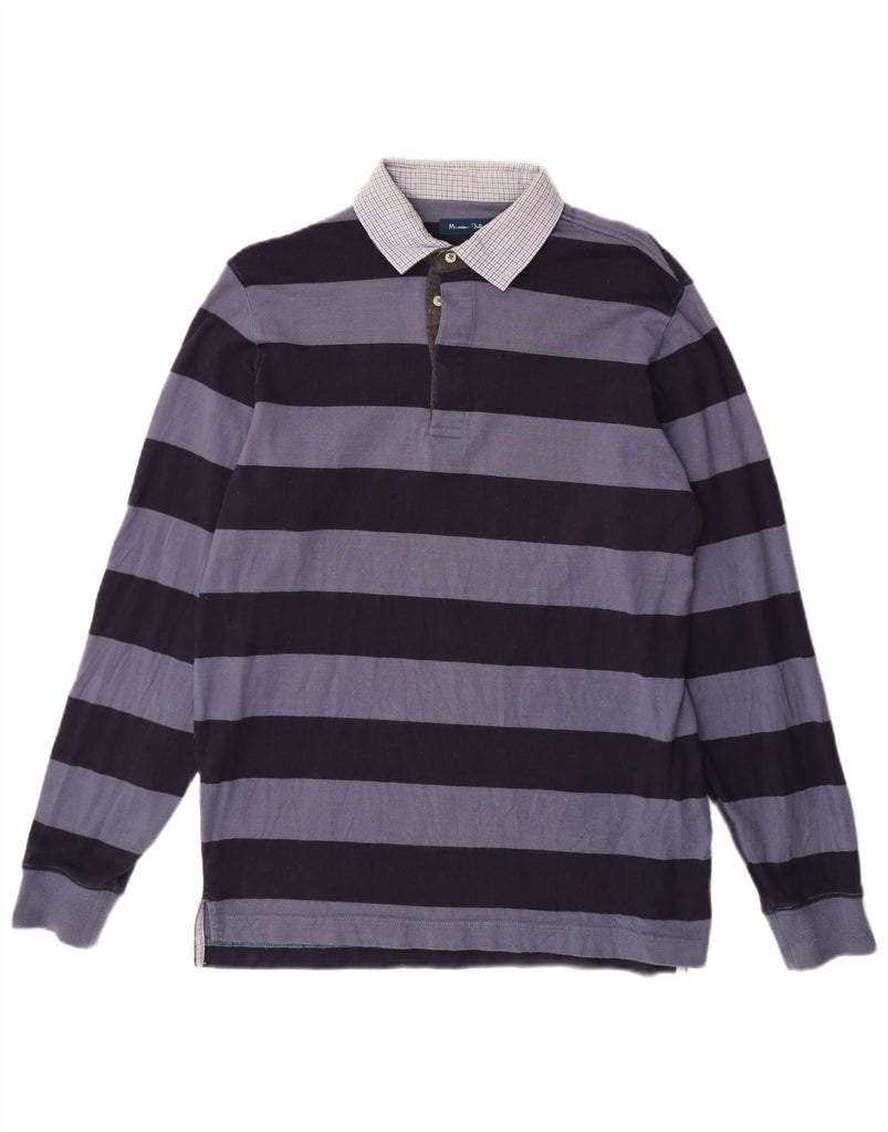MASSIMO DUTTI Mens Long Sleeve Rugby Polo Shirt Medium Navy Blue Striped