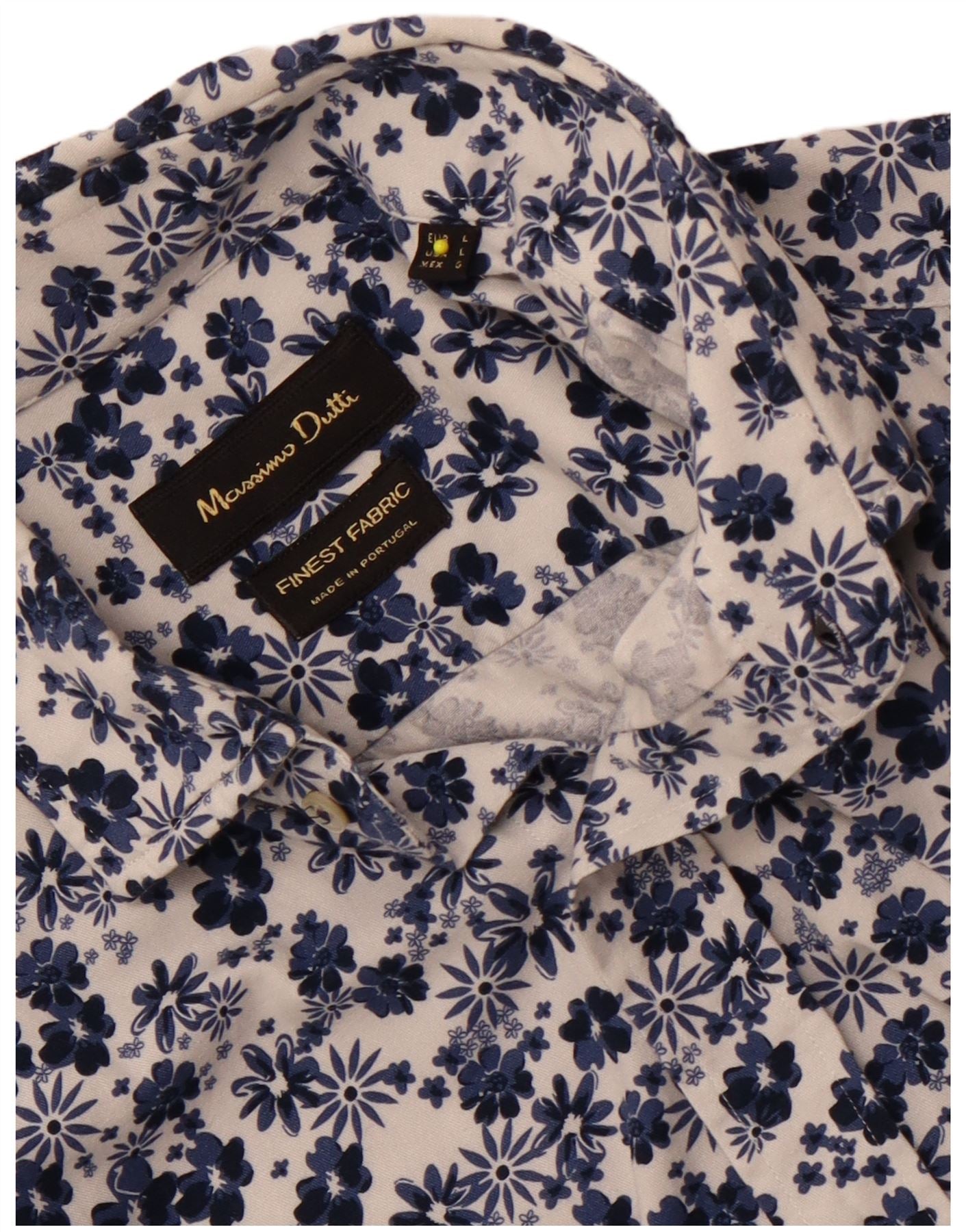 - Descripción de IA: Esta camisa para hombre de Massimo Dutti está confeccionada con un tejido de color blanco impecable. Presenta un patrón floral azul vibrante en todas partes. El escote con cuello y la parte delantera completa con botones ofrecen un estilo clásico. Mangas largas terminadas con puños prolijos. Un ajuste regular garantiza un uso cómodo. Esta camisa combina la sastrería tradicional con un diseño fresco y llamativo.