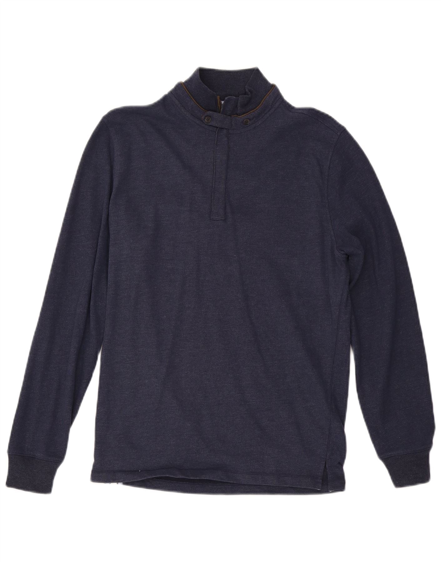 MASSIMO DUTTI Hombre Zip Neck Top Manga Larga Medio Azul Marino Algodón