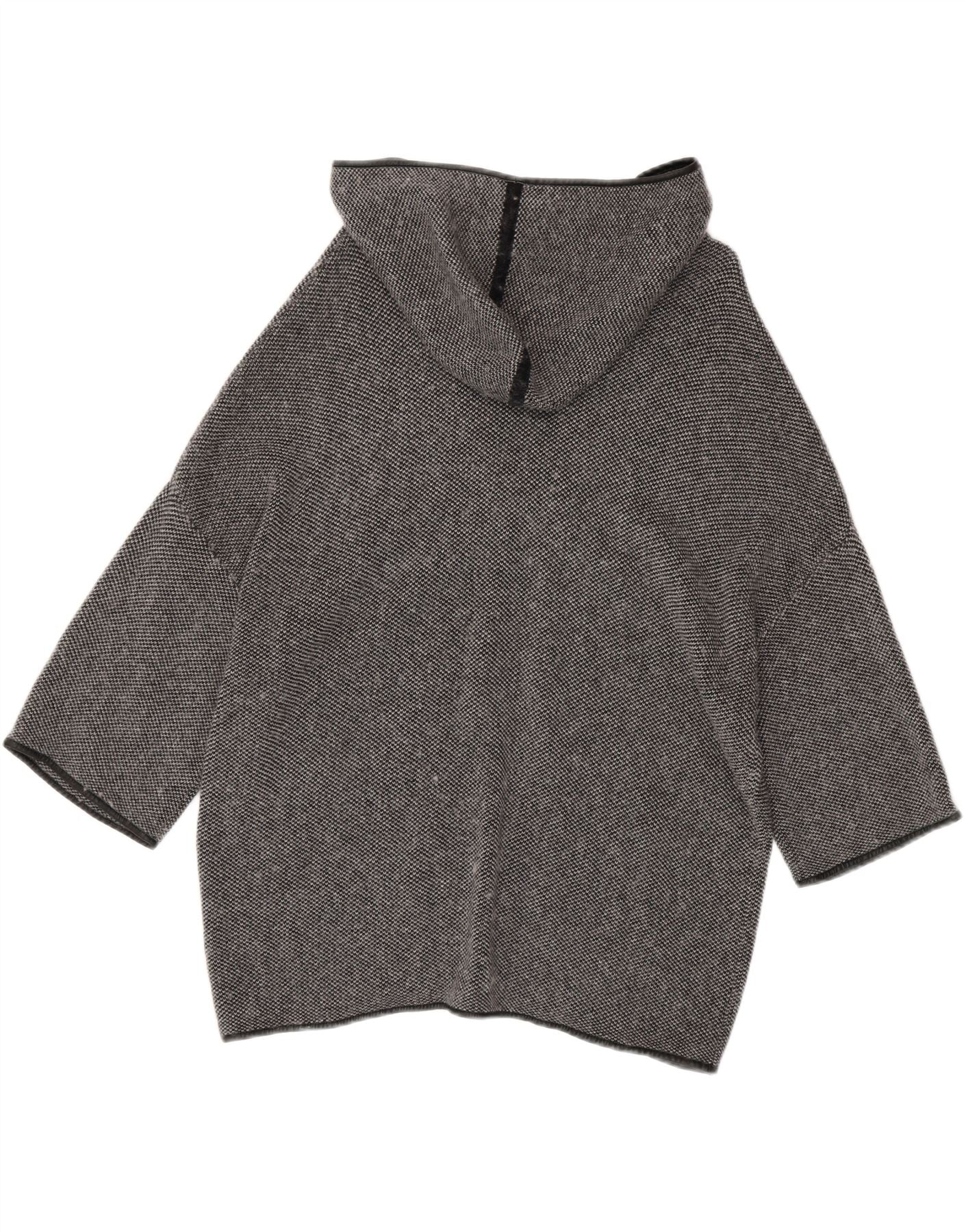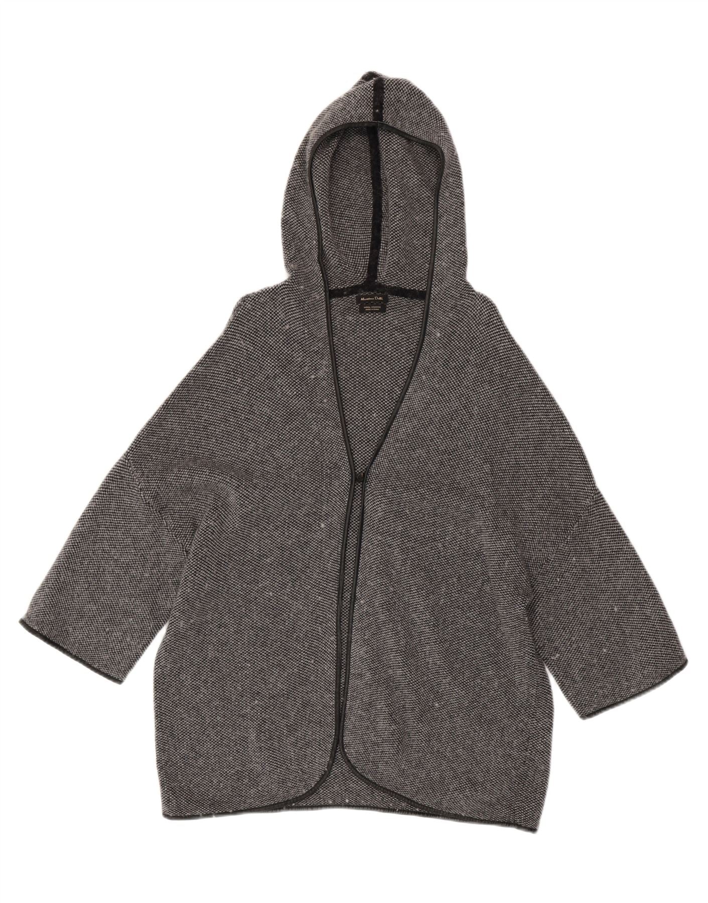 MASSIMO DUTTI Womens 3/4 Sleeve Hooded Cardigan Sweater UK 18 XL Grey Wool