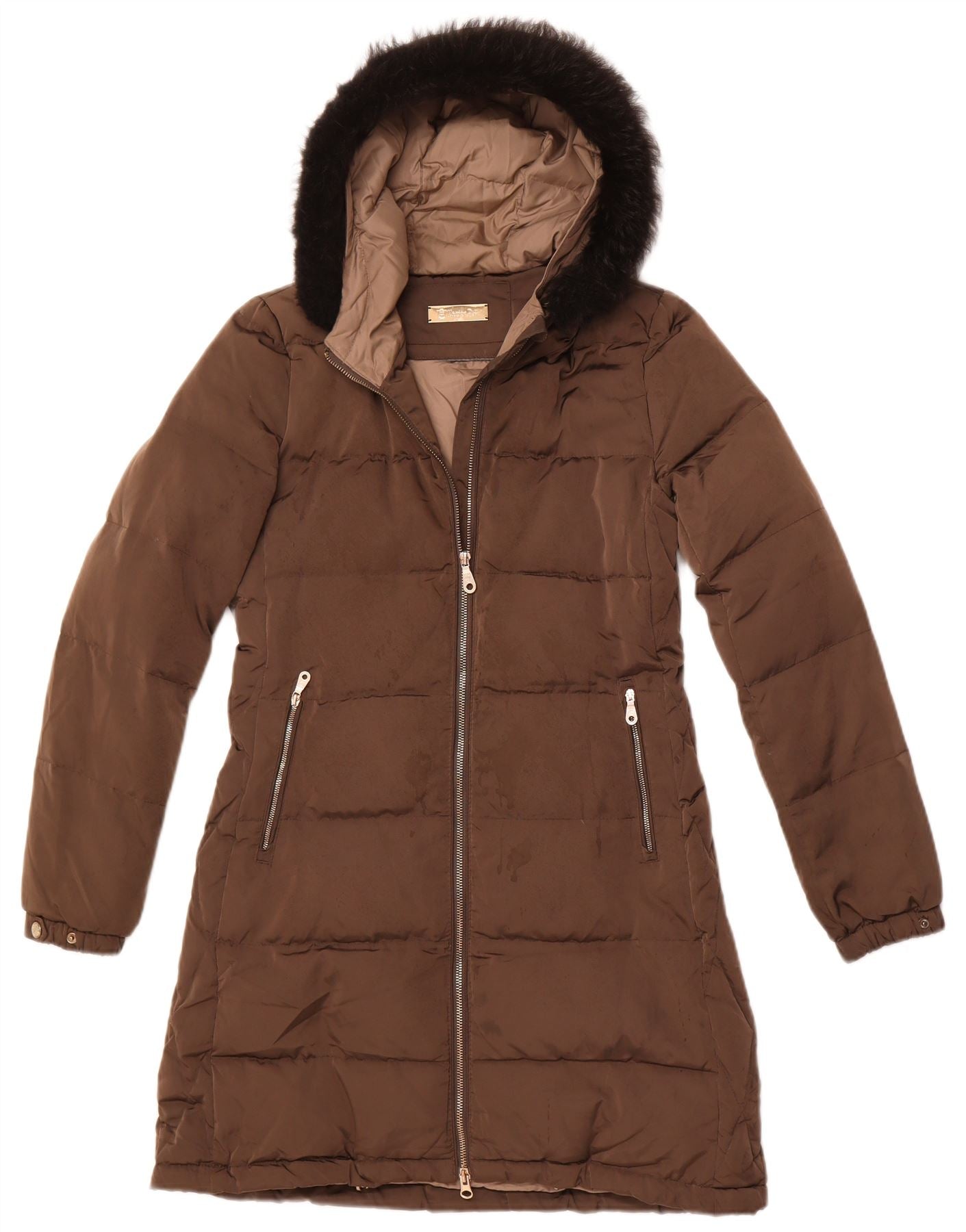MASSIMO DUTTI Abrigo acolchado con capucha para mujer UK 40 Small Marrón Poliéster