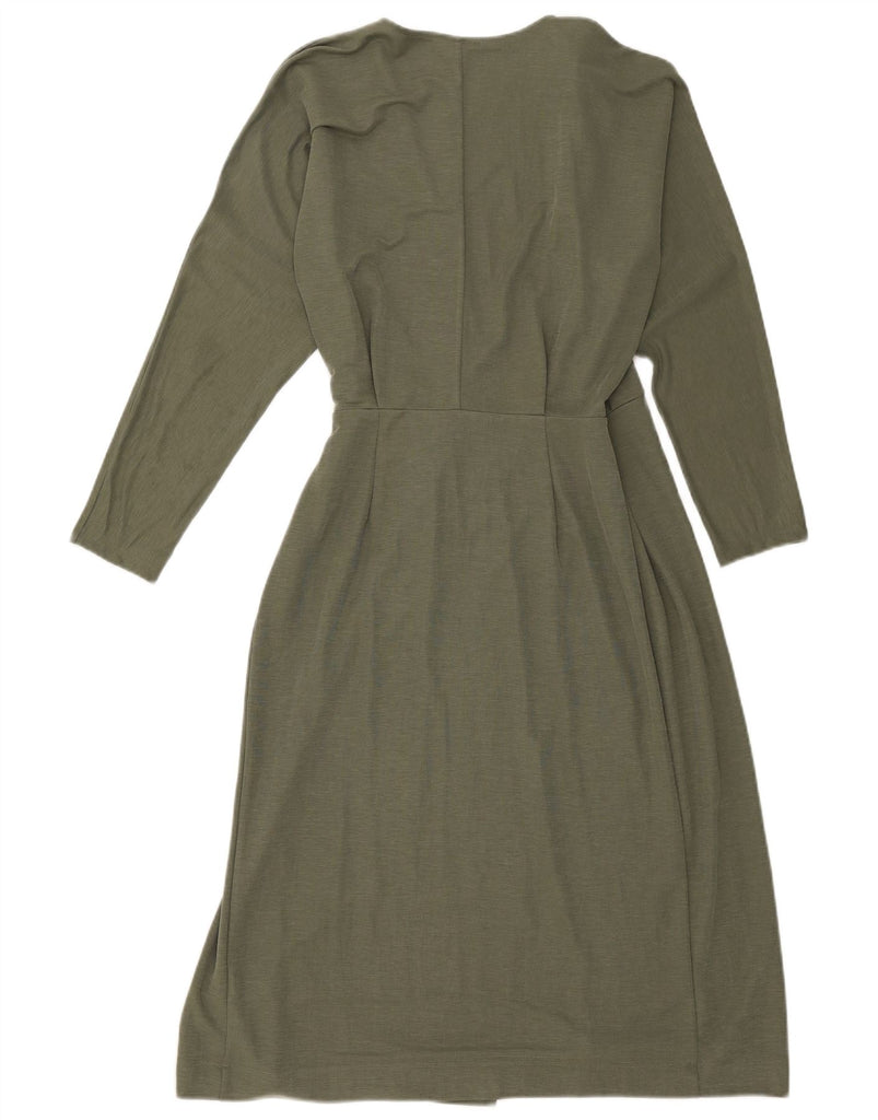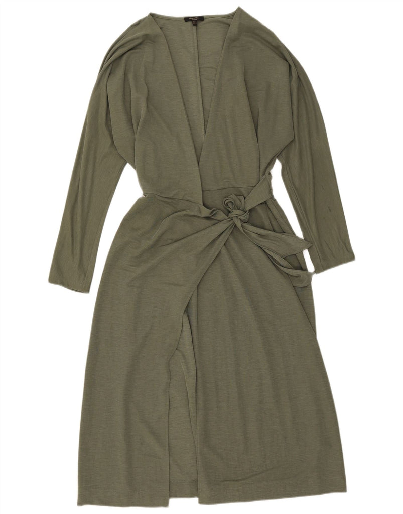 MASSIMO DUTTI Womens Long Sleeve Wrap Dress UK 10 Small Khaki Viscose