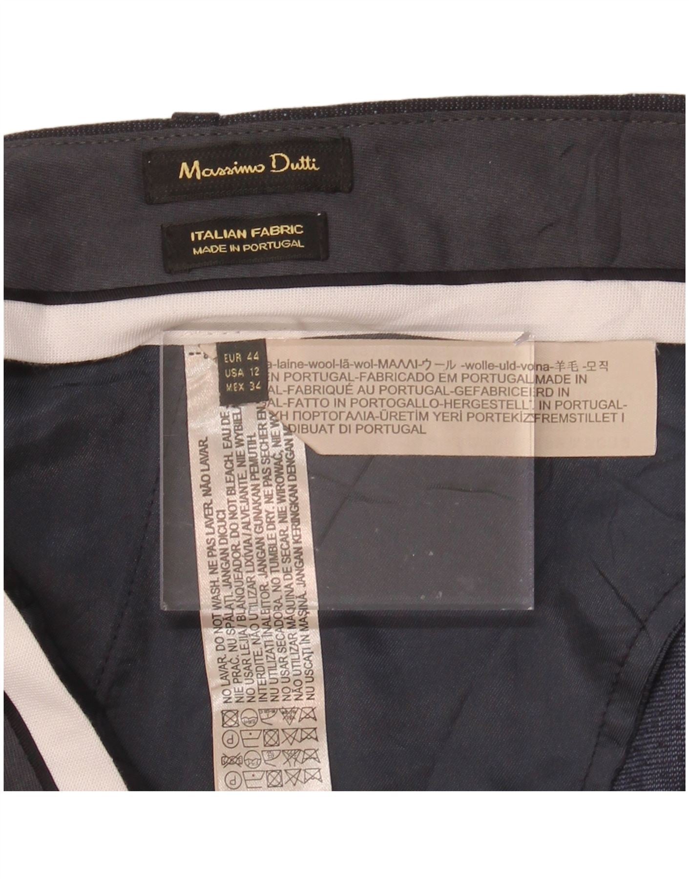 MASSIMO DUTTI Womens Slim Chino Trousers EU 44 XL W34 L39 Navy Blue Wool