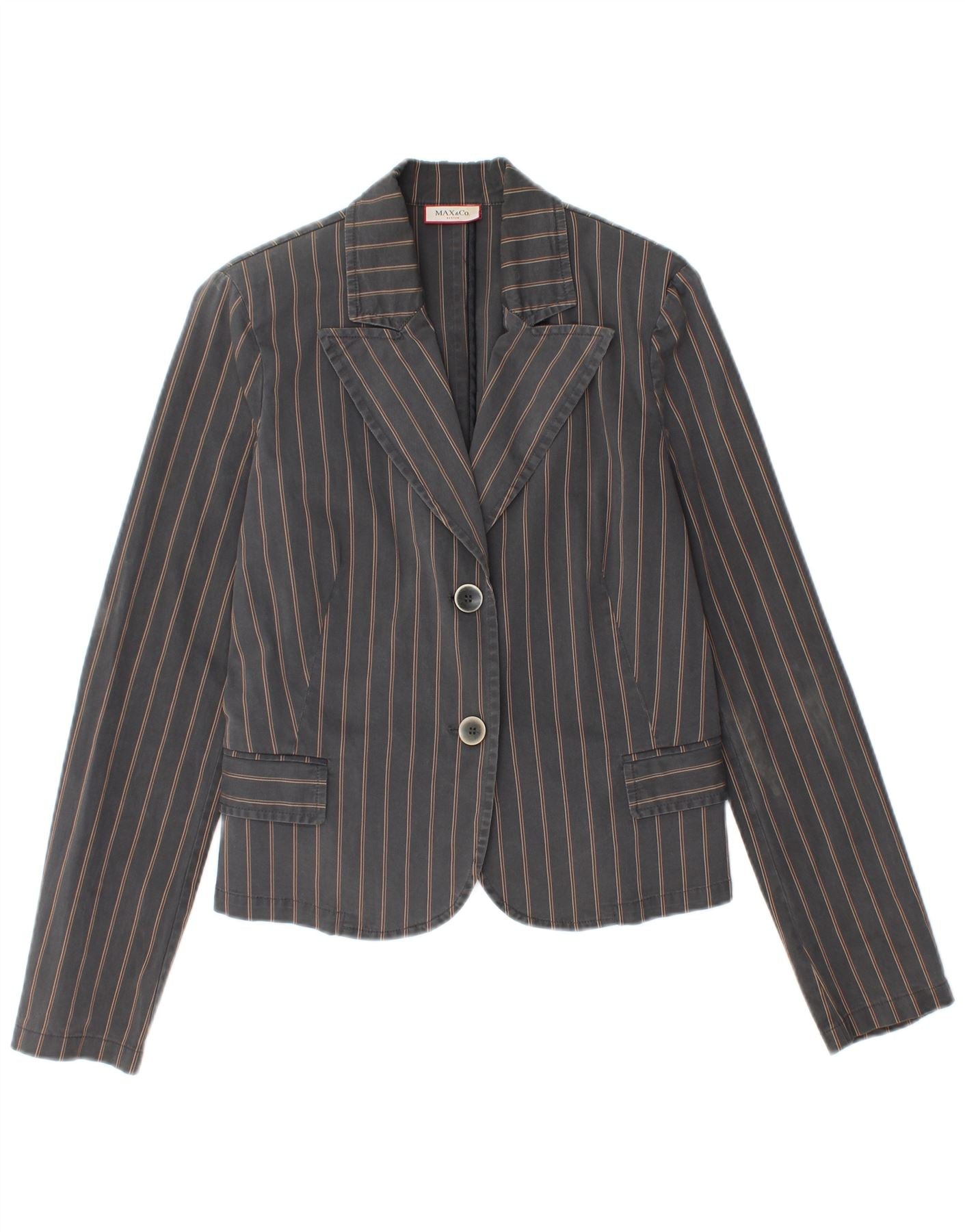 MAX & CO. Chaqueta tipo blazer activa de 2 botones para mujer UK 44 Gris medio a rayas