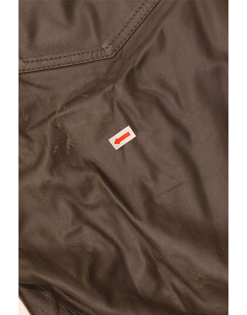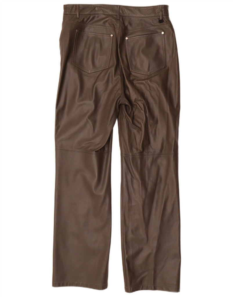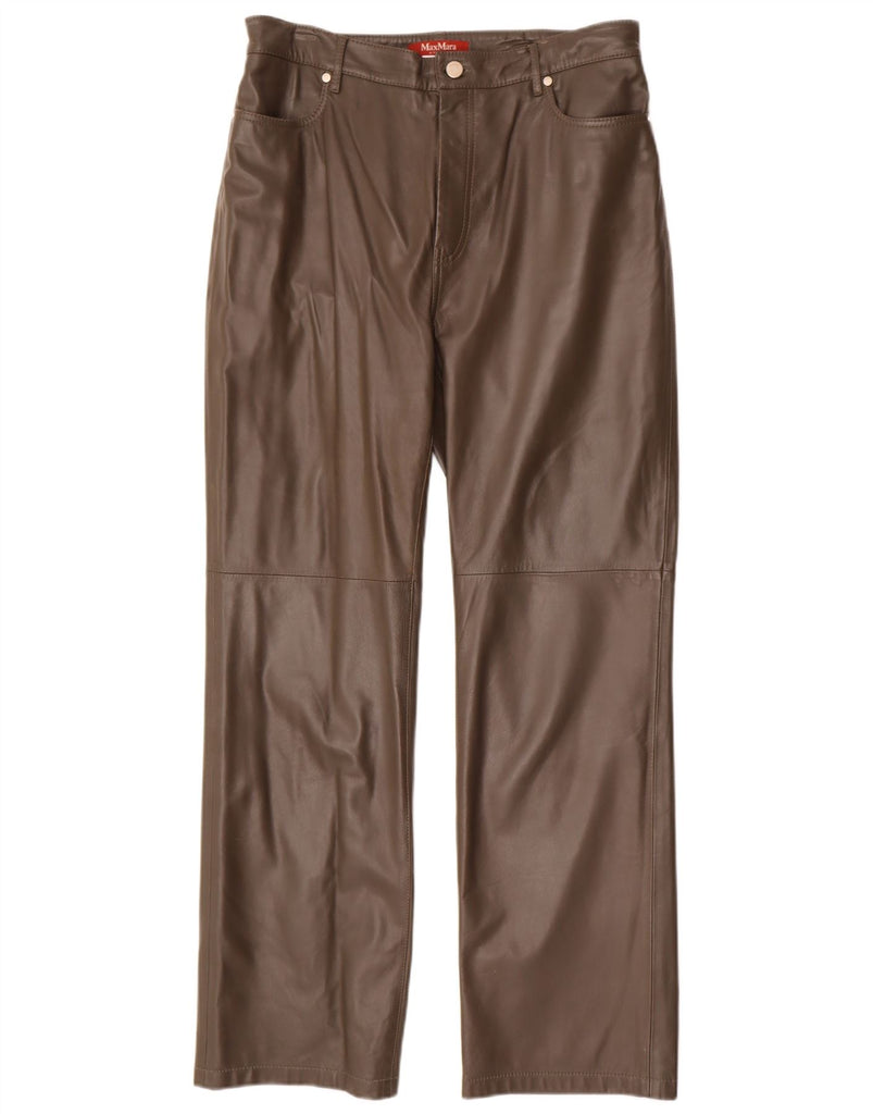 MAX MARA Womens Straight Faux Trousers UK 14 Large W34 L31 Brown Leather
