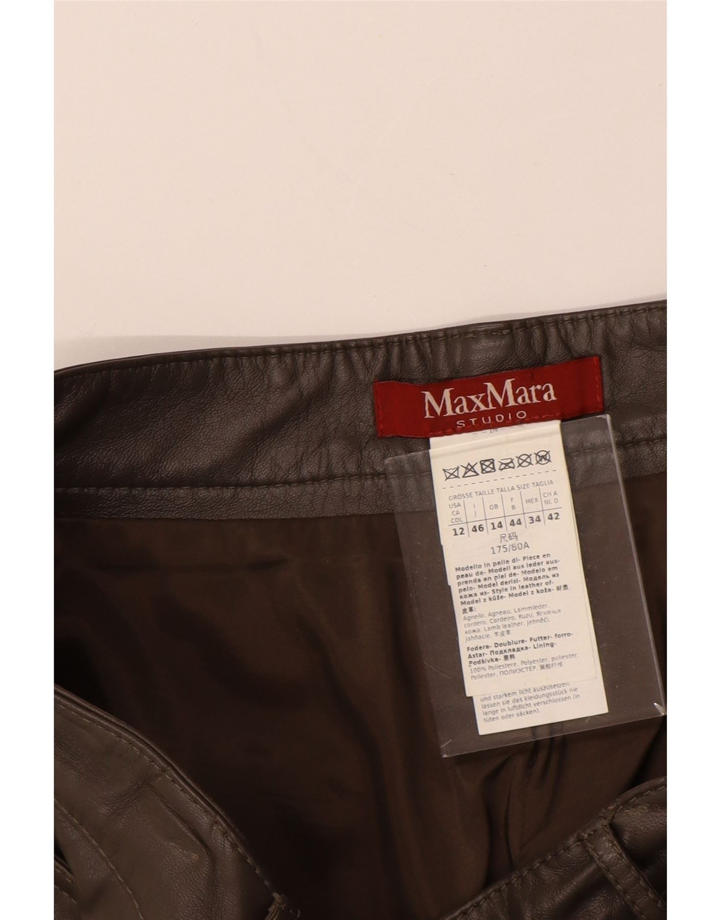 - AI Description: These Max Mara womens trousers are crafted from luxurious brown lamb leather. They feature a straight leg and a regular fit for classic comfort. A zip closure ensures a smooth front. Practical pockets are included in the design.