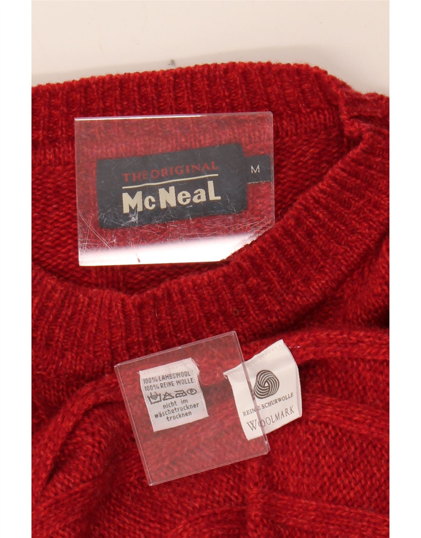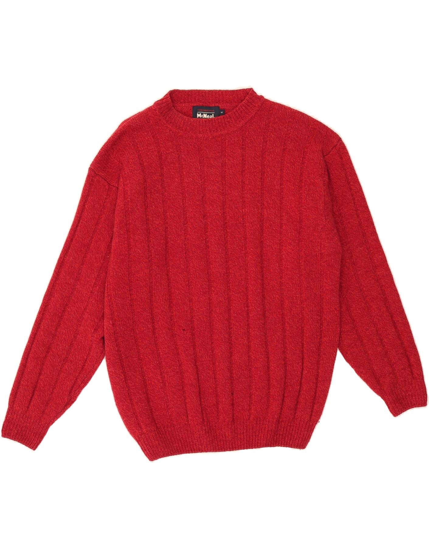 - AI Description: This pre-owned MC Neal women's red striped knit sweater is a classic wardrobe staple. Featuring a round neck and long sleeves, this pullover jumper offers a regular fit. While in excellent condition, it presents minor defects consisting of small holes or tears at the front. Adorned with a button accent and a striped pattern, this size L sweater is ideal for casual wear. Recommended retail price: £15.99.