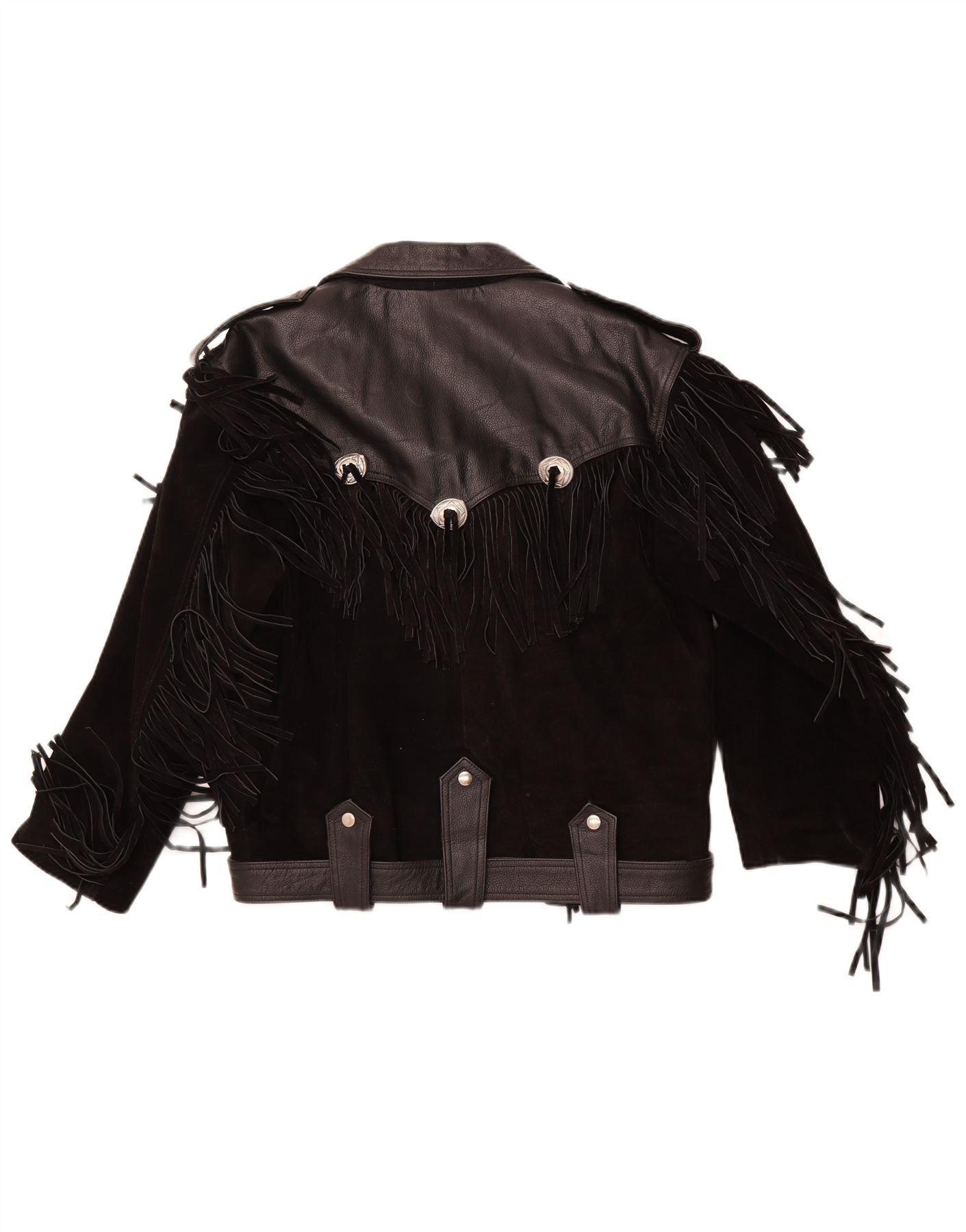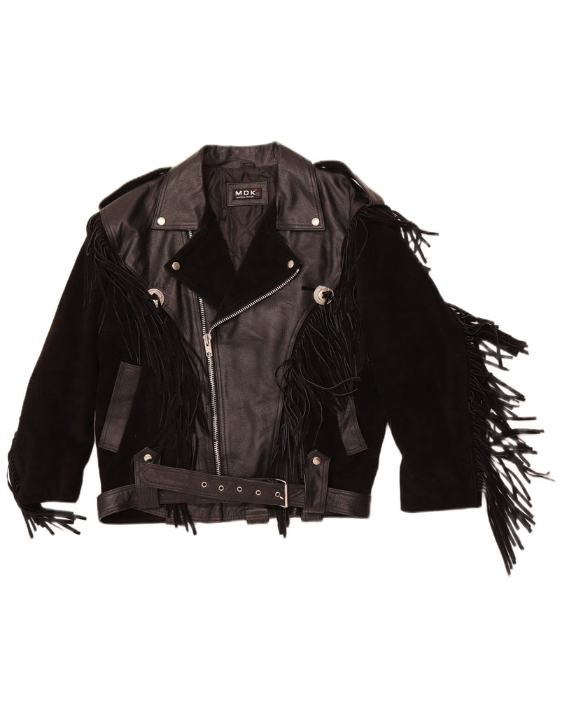 MDK Chaqueta motera de cuero estilo occidental para mujer, talla 44, talla mediana, color negro