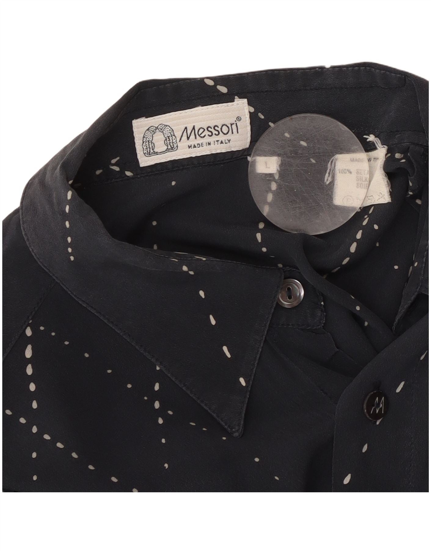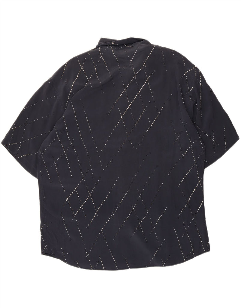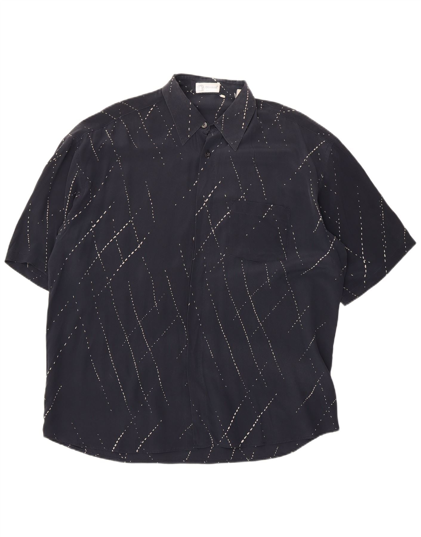 MESSORI Camisa de manga corta para hombre grande azul marino Argyle/Diamond Silk