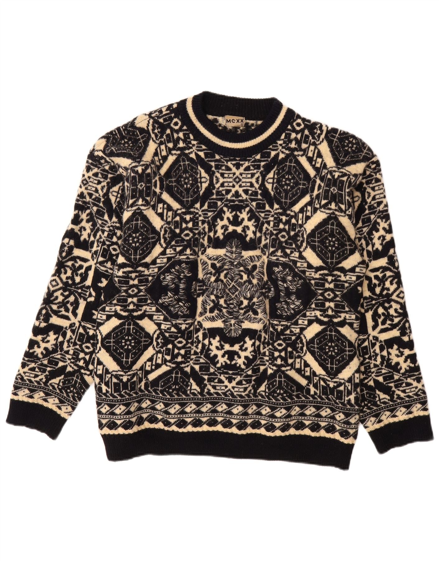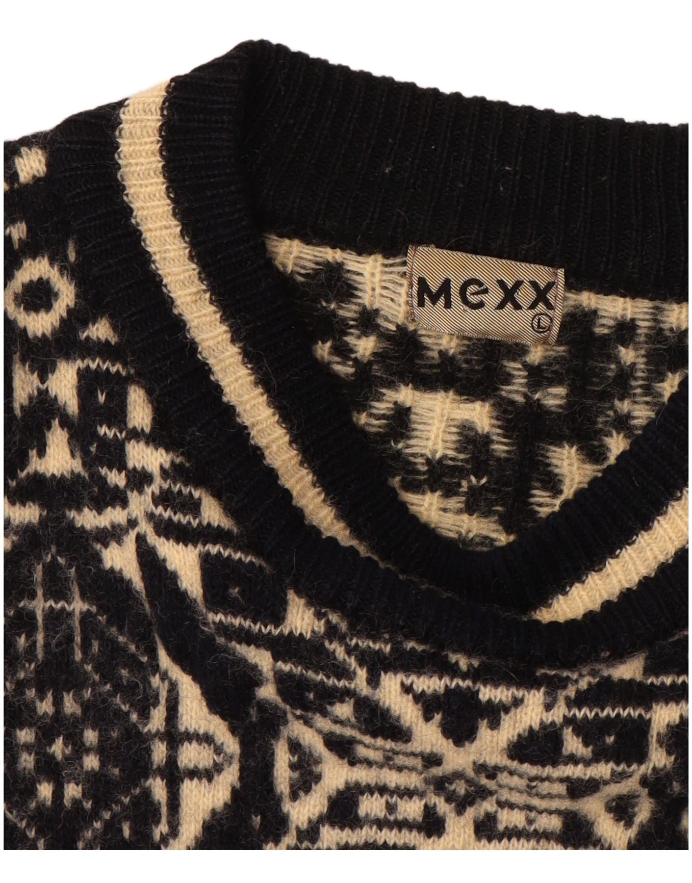 MEXX Mens Crew Neck Jumper Sweater Large Navy Blue Fair Isle Acrylic