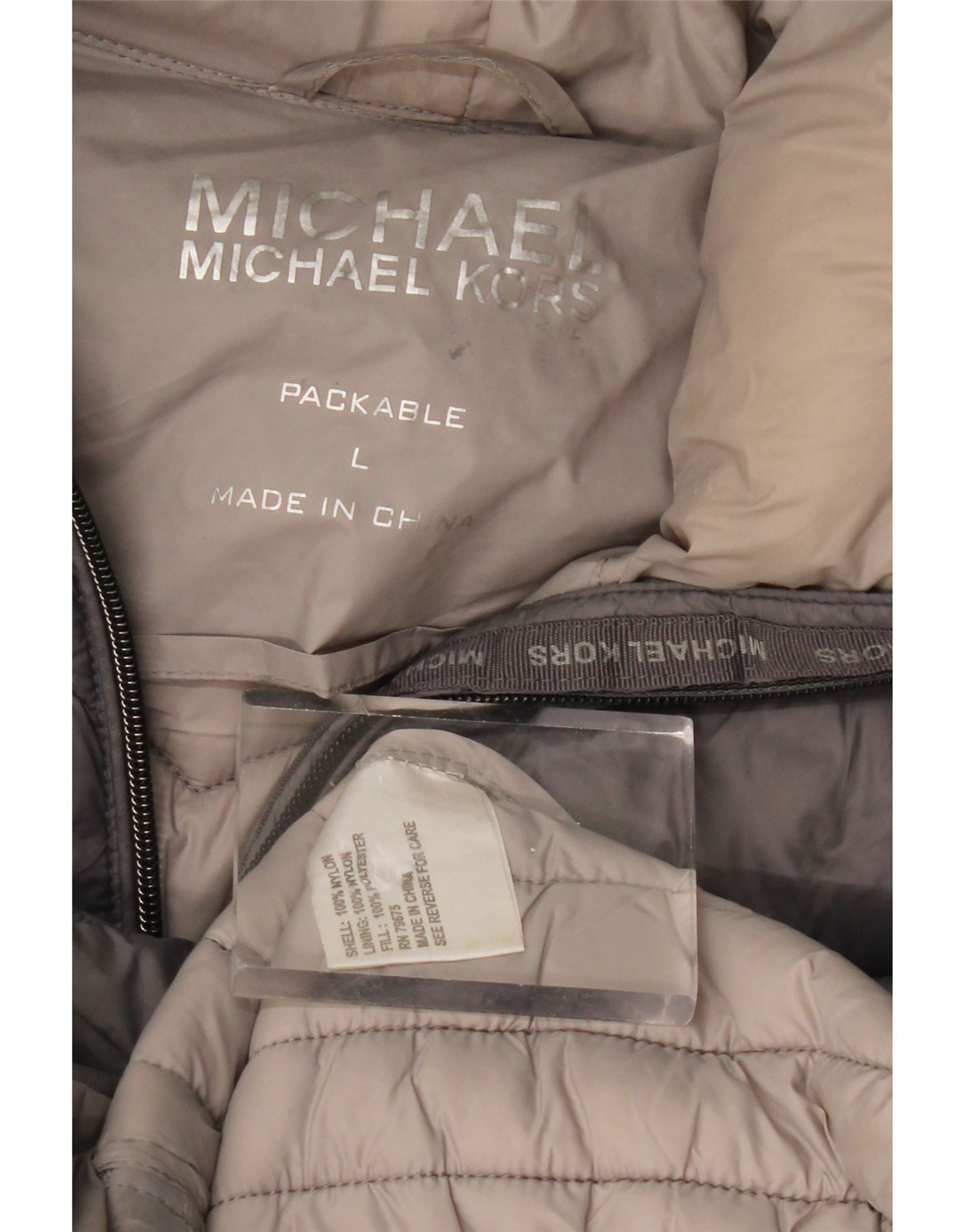 MICHAEL KORS Abrigo acolchado con capucha para mujer UK 46 Grande Nylon gris