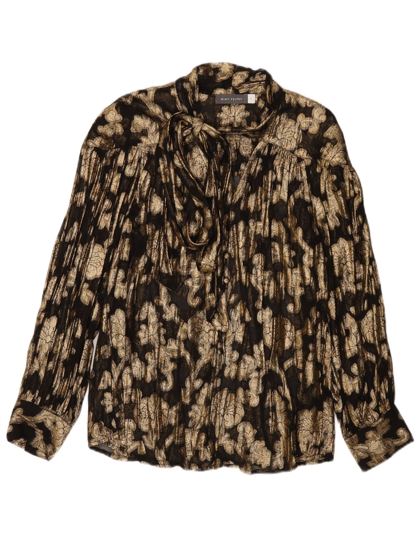 MINT VELVET Blusa camisera con lazo frontal para mujer UK 44 Viscosa floral dorada mediana