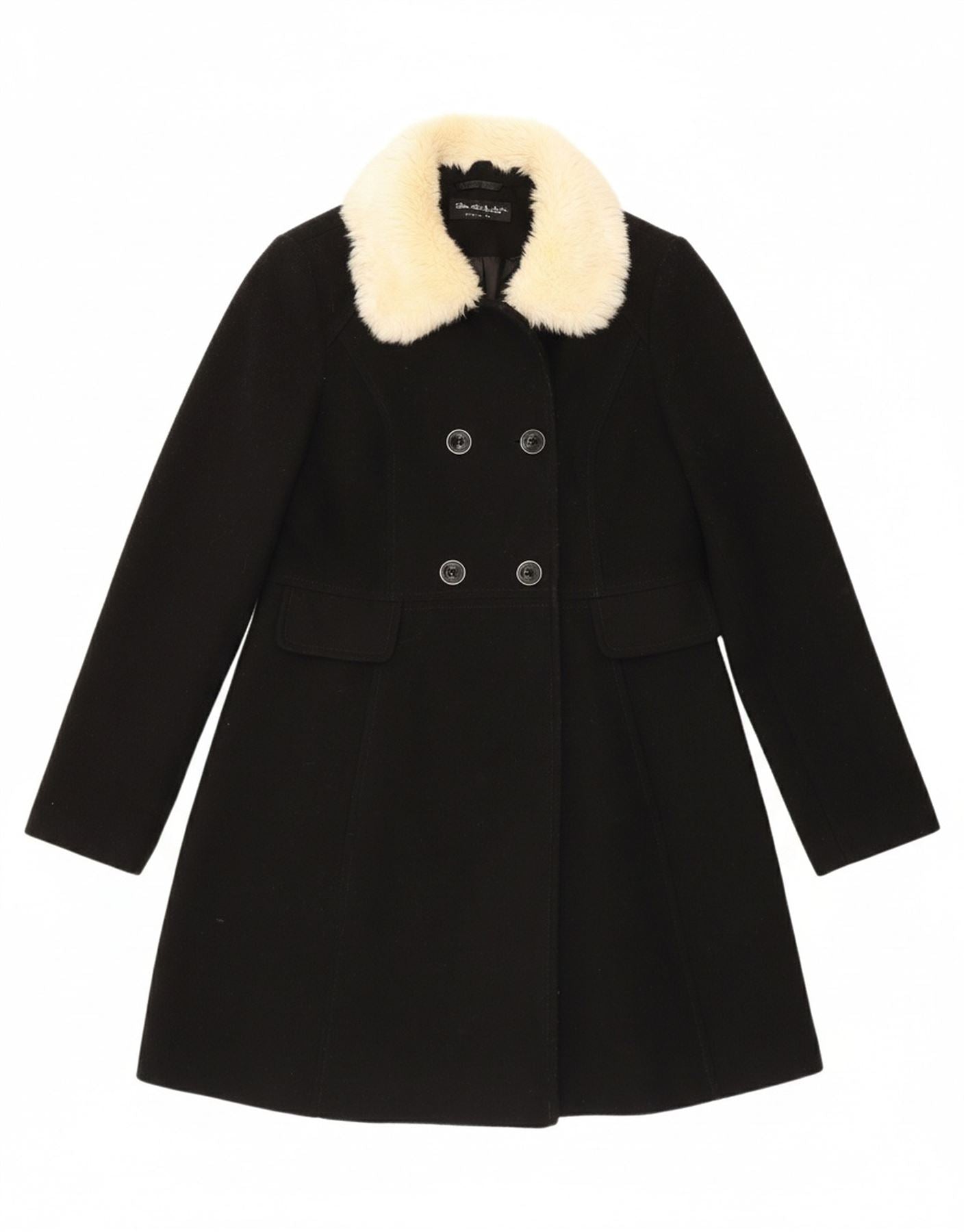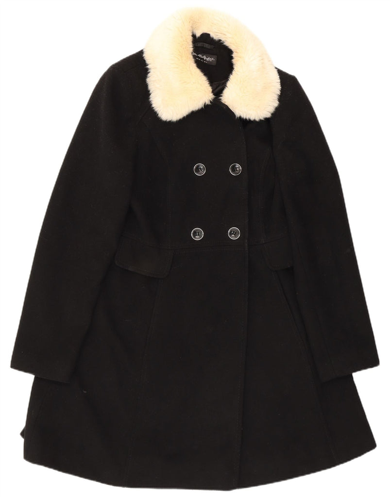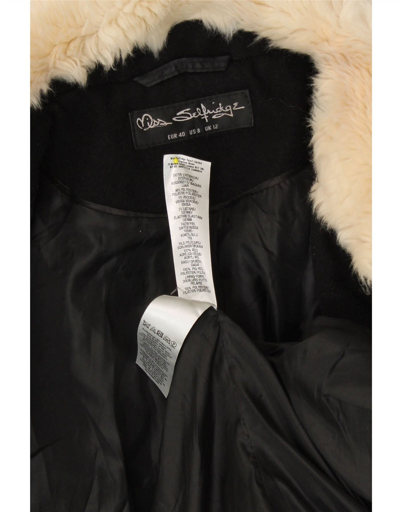MISS SELFRIDGE Womens Double Breasted Coat UK 12 Medium Black Polyester