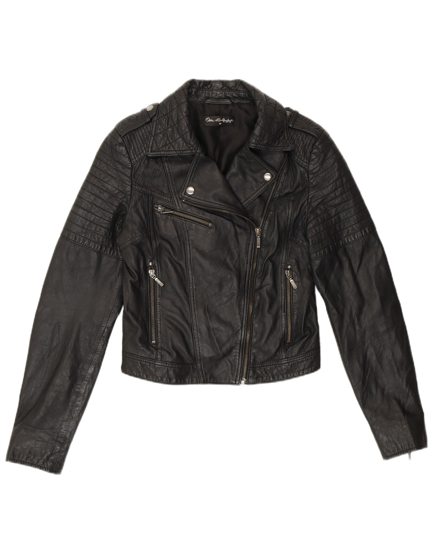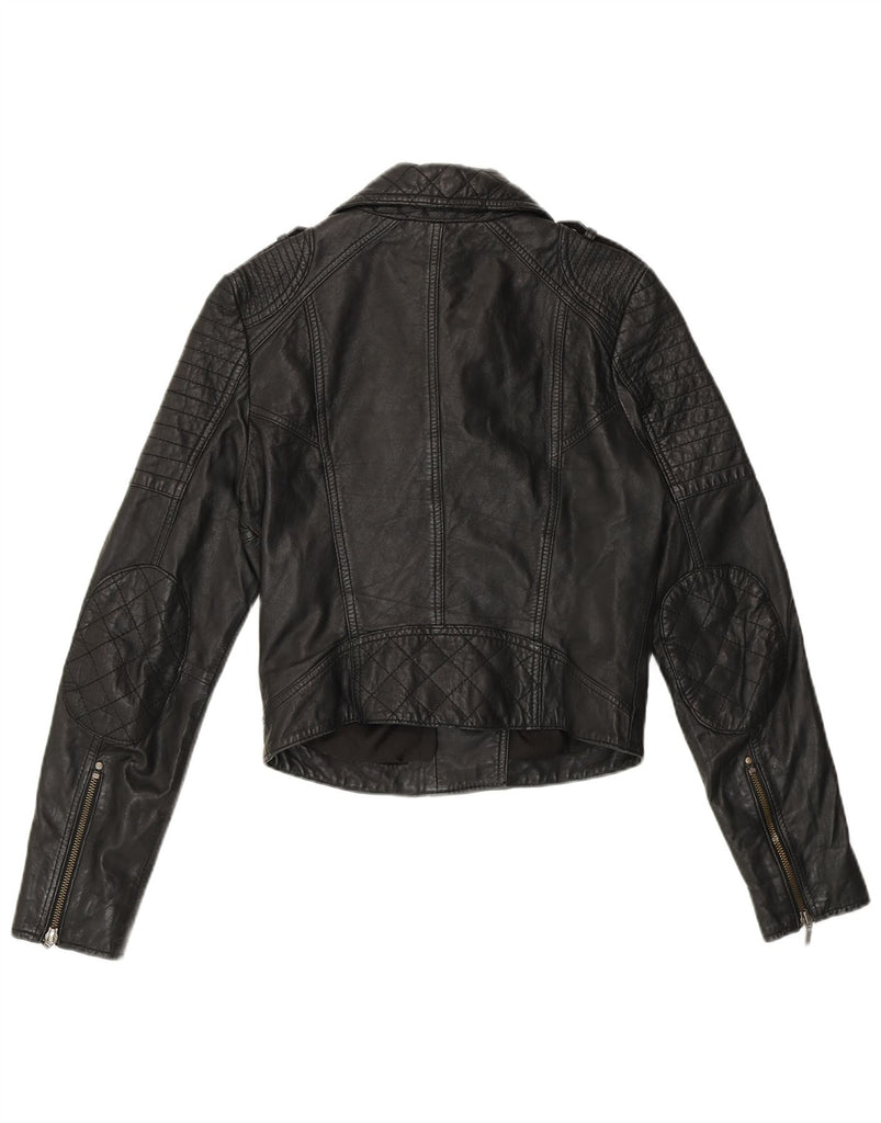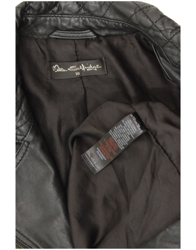 MISS SELFRIDGE Womens Leather Biker Jacket UK 10 Small Black Leather Biker