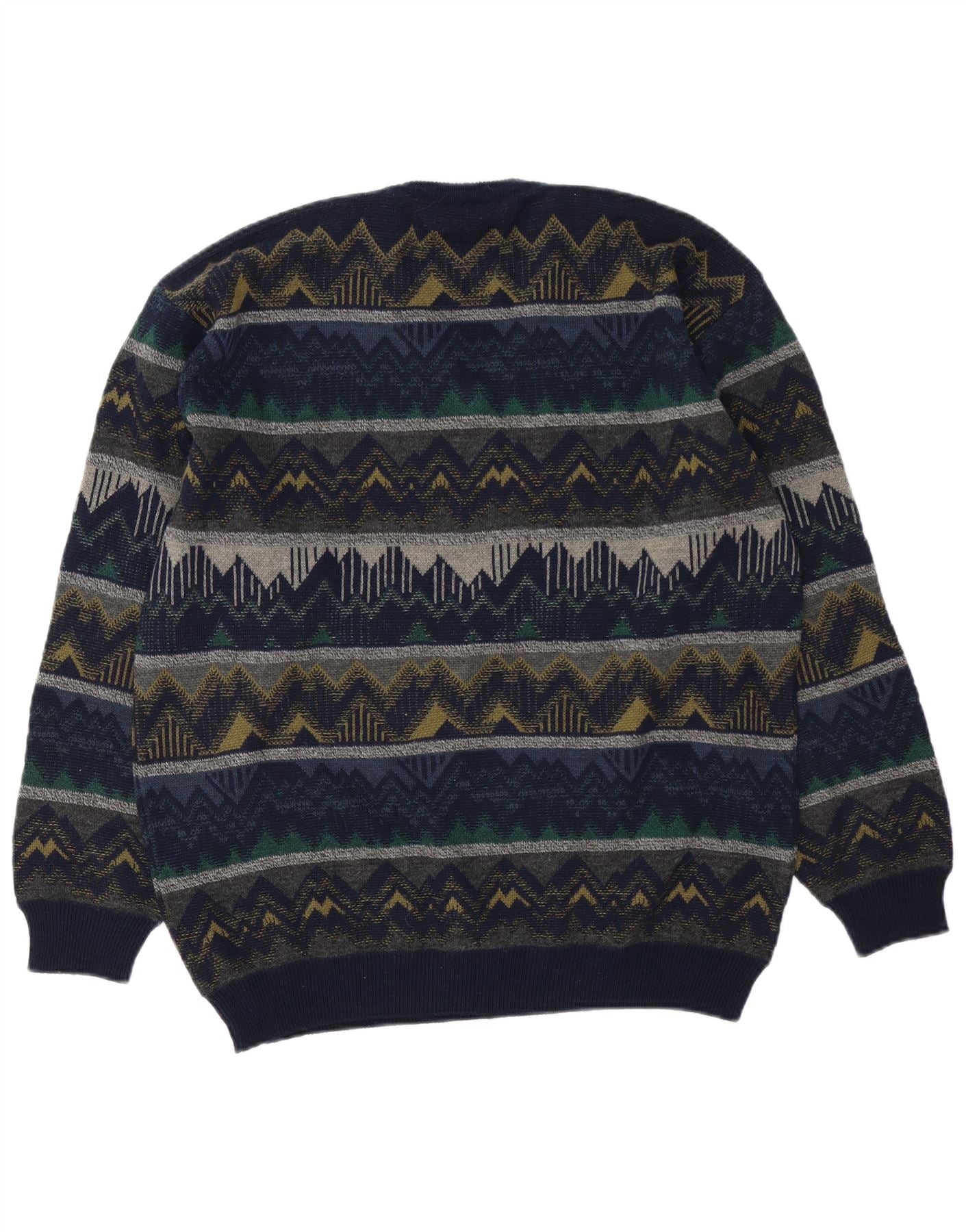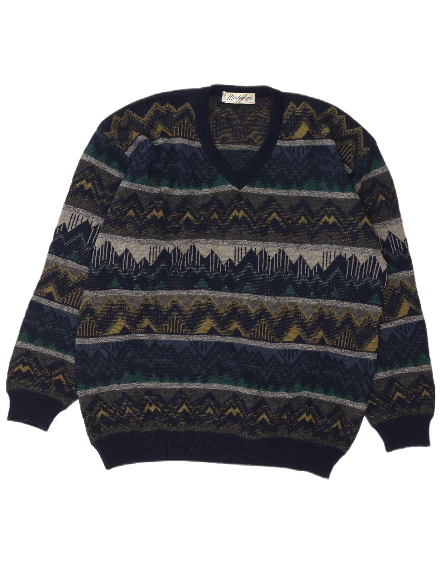 MODANGO Suéter con Cuello en V para Hombre Grande Azul Marino Geométrico Acrílico