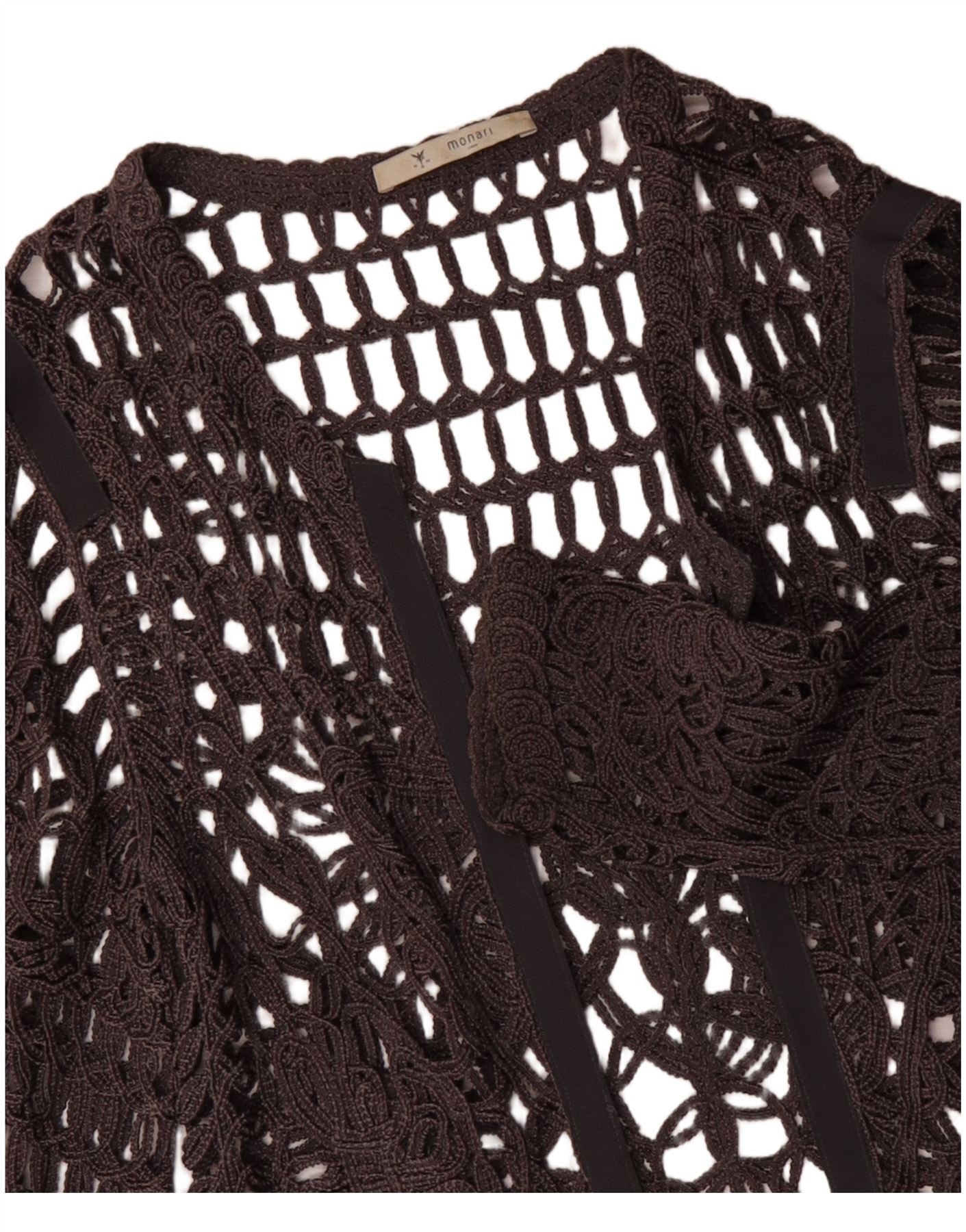 MONARI Top transparente de crochet de manga larga para mujer UK 44 Gris grande