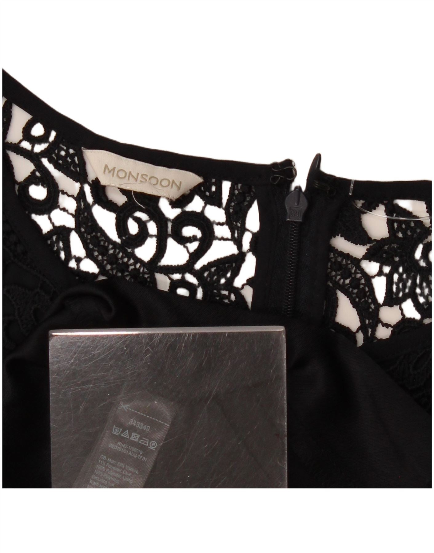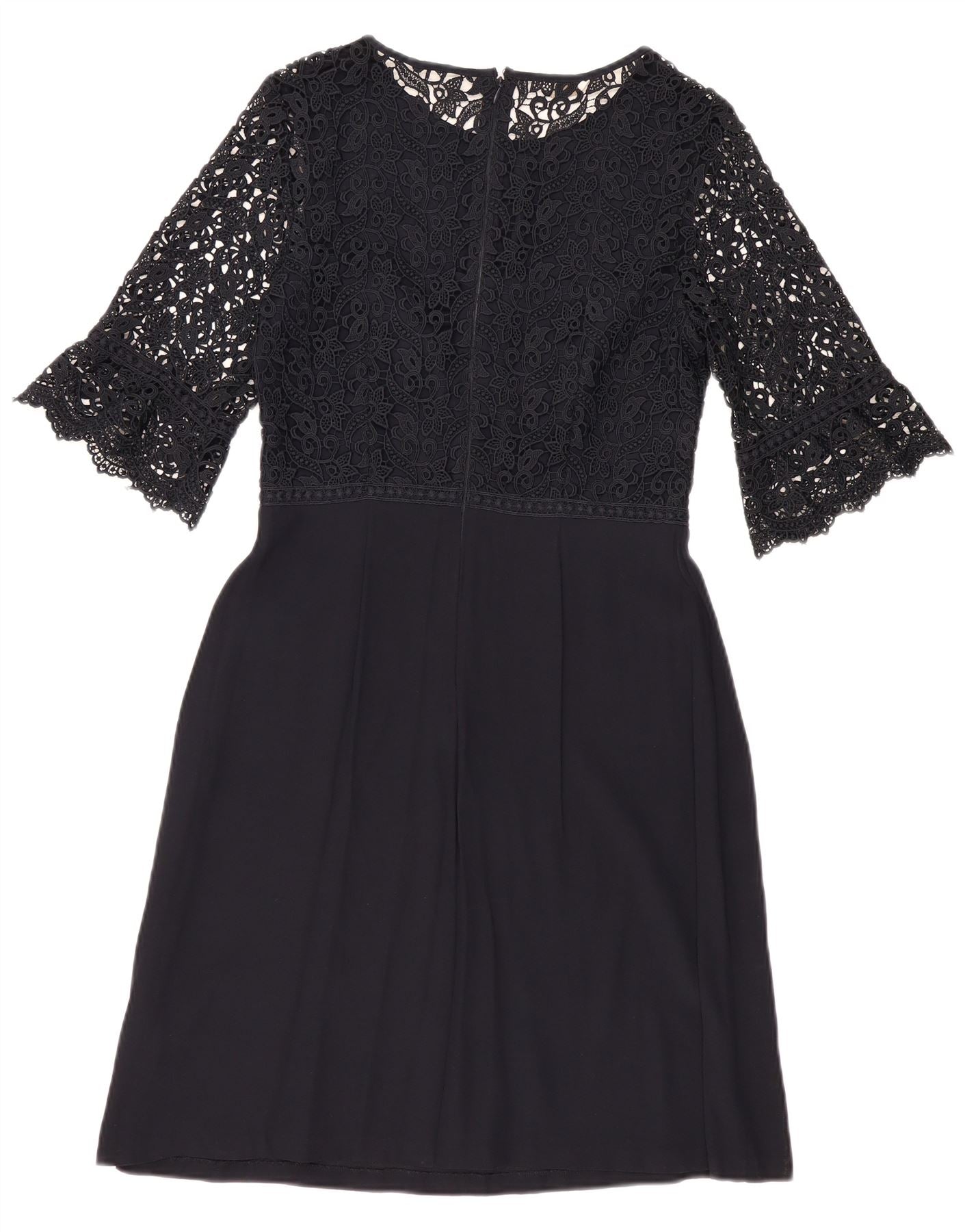 MONSOON Vestido acampanado de manga 3/4 para mujer, talla 40, talla pequeña, azul marino, floral
