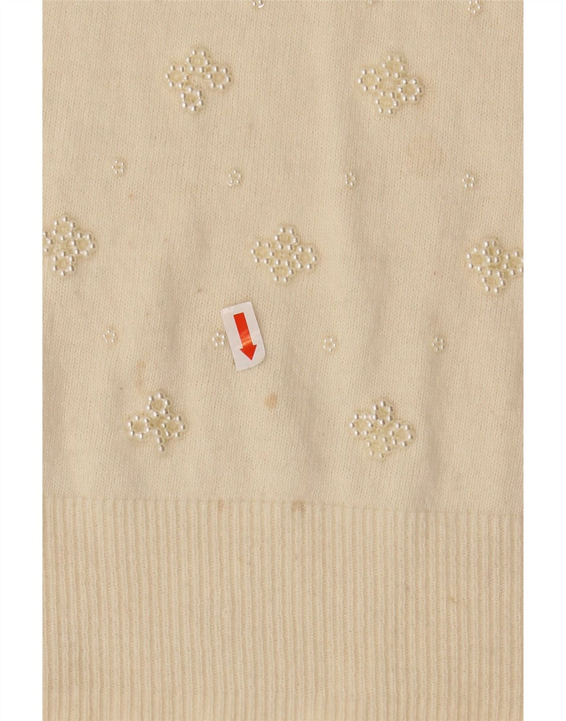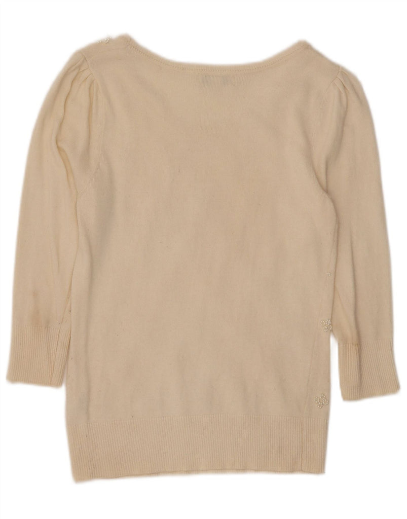 Monsoon Womens Boat Neck Jumper Sweater UK 10 Small Off White Floral Cotton