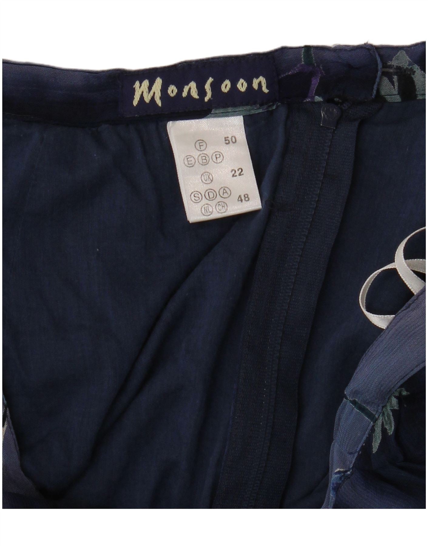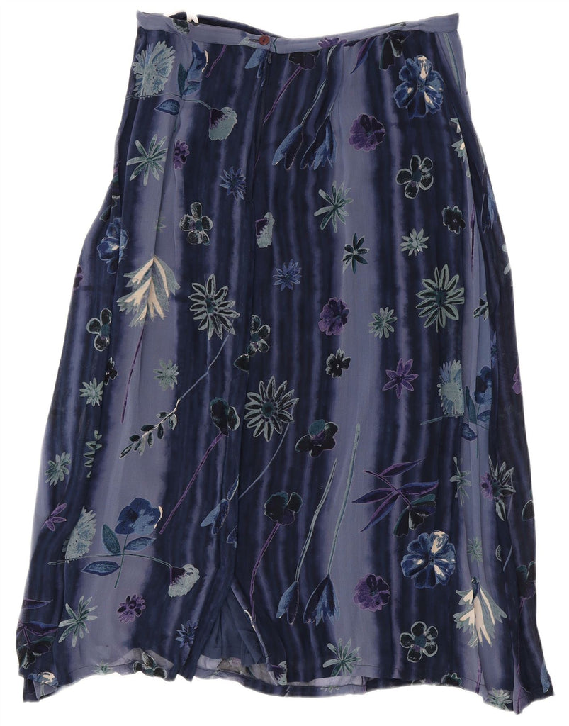 MONSOON Womens High Waist A-Line Skirt UK 22 2XL W34 Blue Floral Cotton