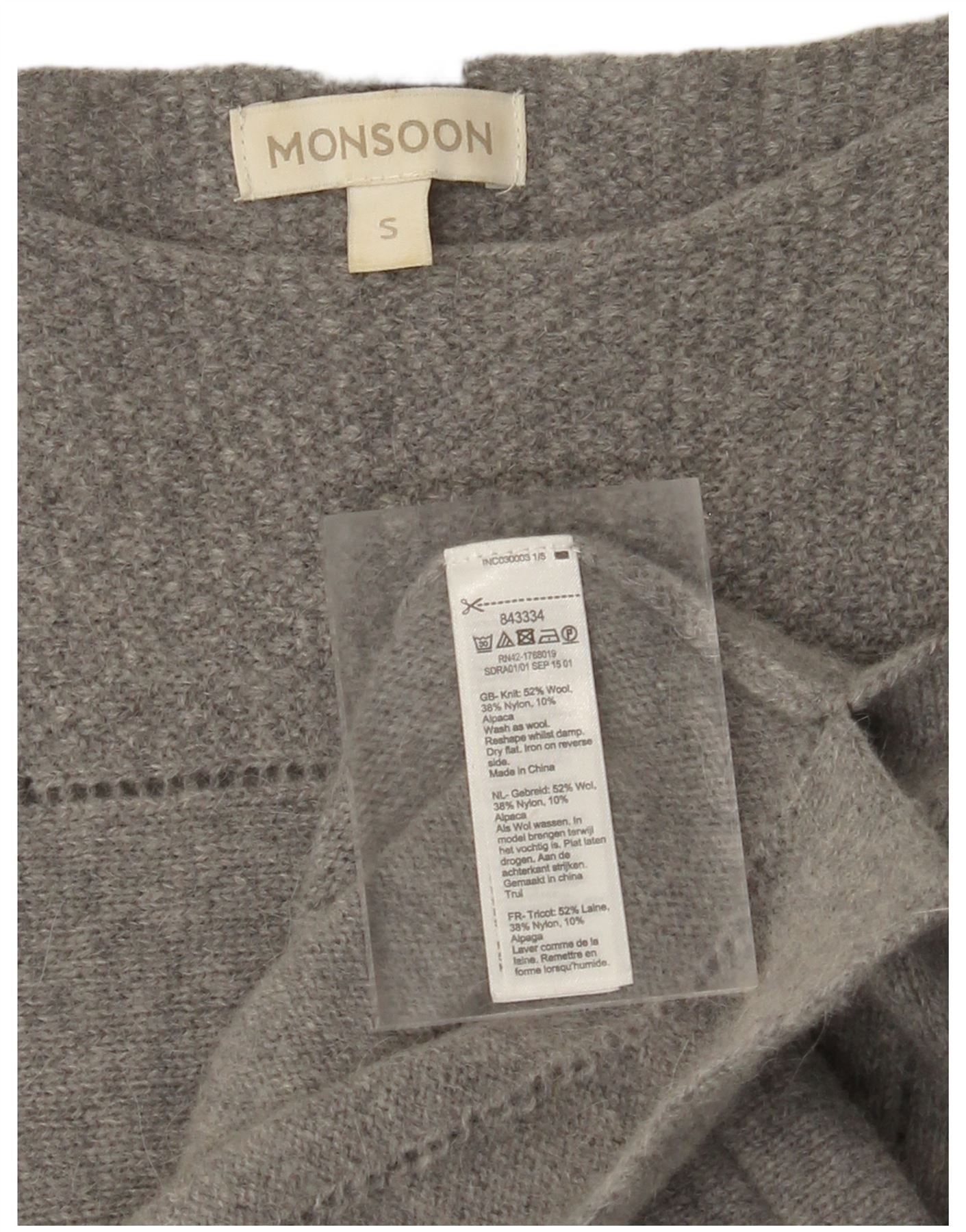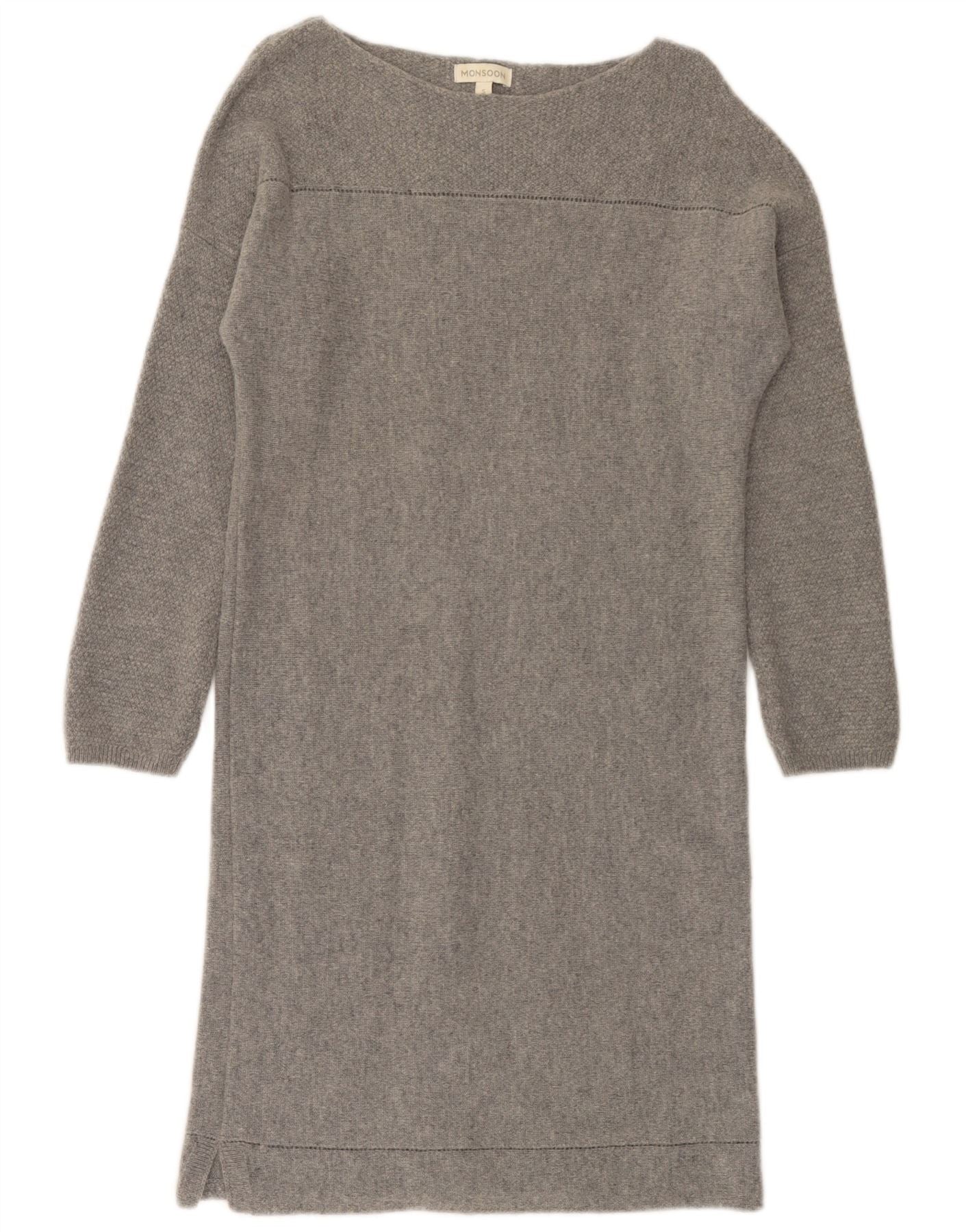 MONSOON Vestido tipo jersey de manga larga para mujer UK 10 Small Grey Wool