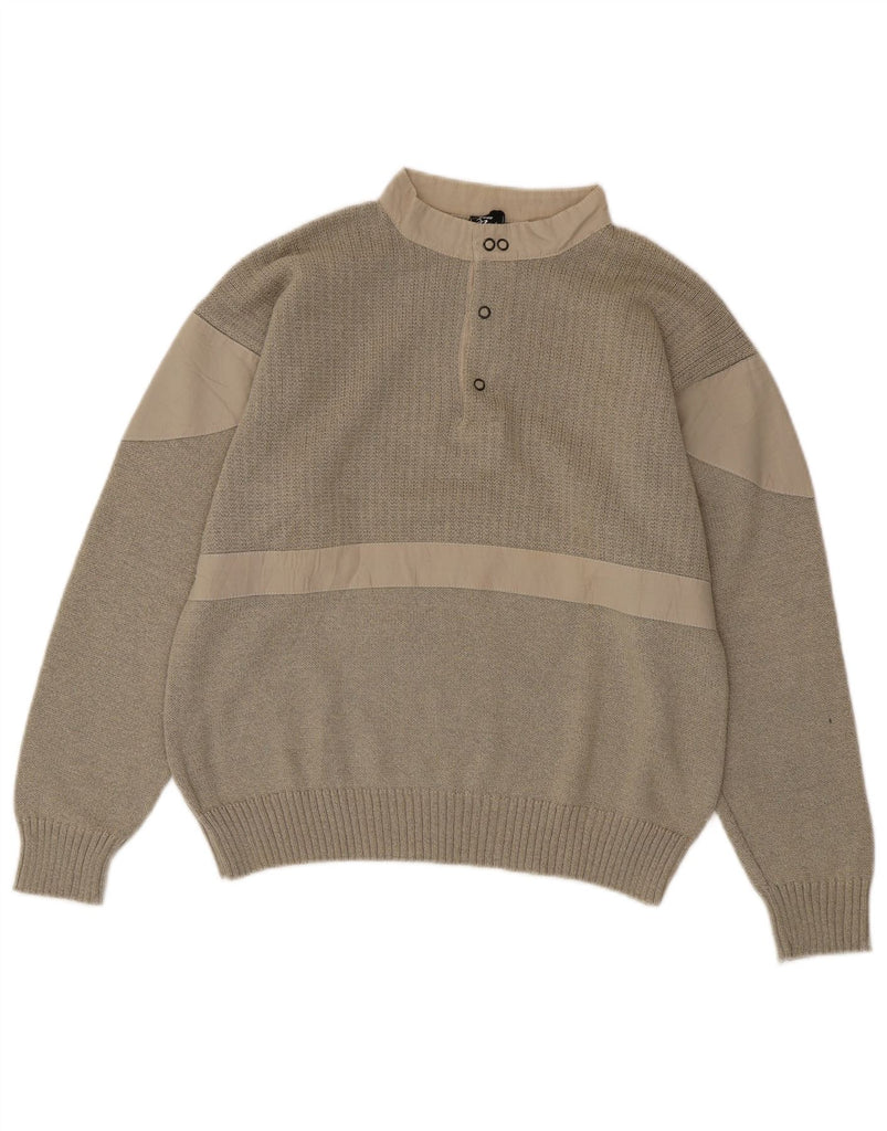 MONTE CARLO Jersey de cuello redondo para mujer UK 46 Large Khaki Colourblock