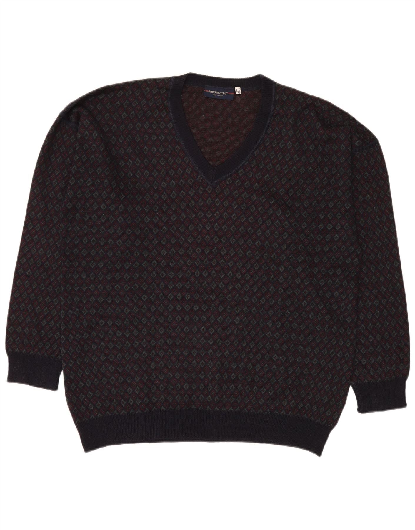 MONTECATINI Jersey De Punto Con Cuello En V Para Hombre Grande Multicolor Geométrico