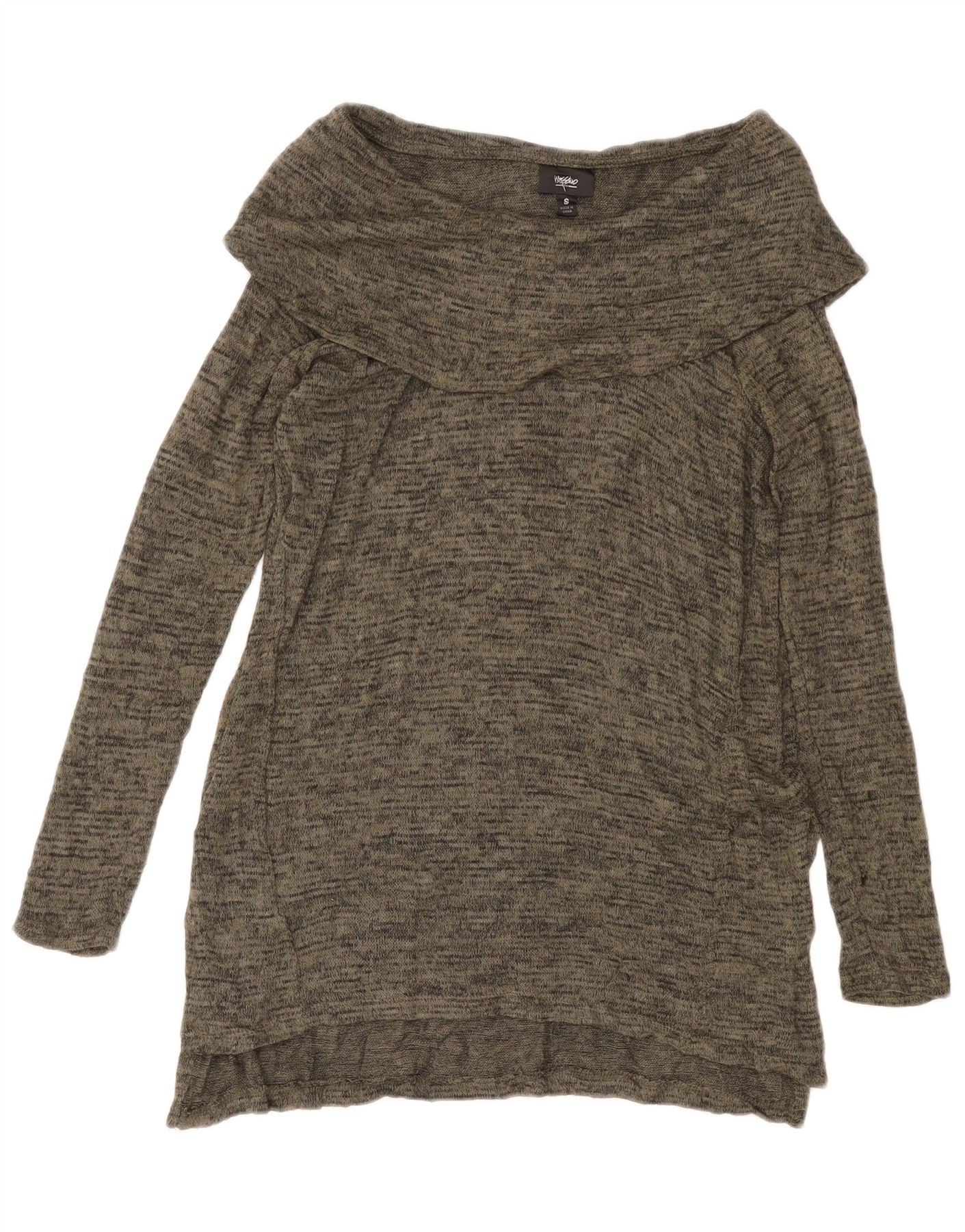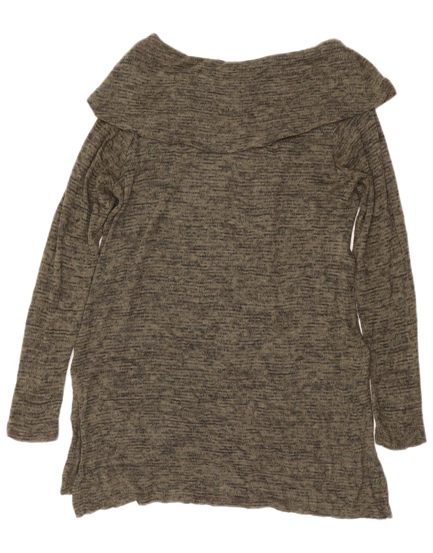 MOSSIMO Womens Longline Roll Neck Jumper Sweater UK 10 Small Khaki Flecked