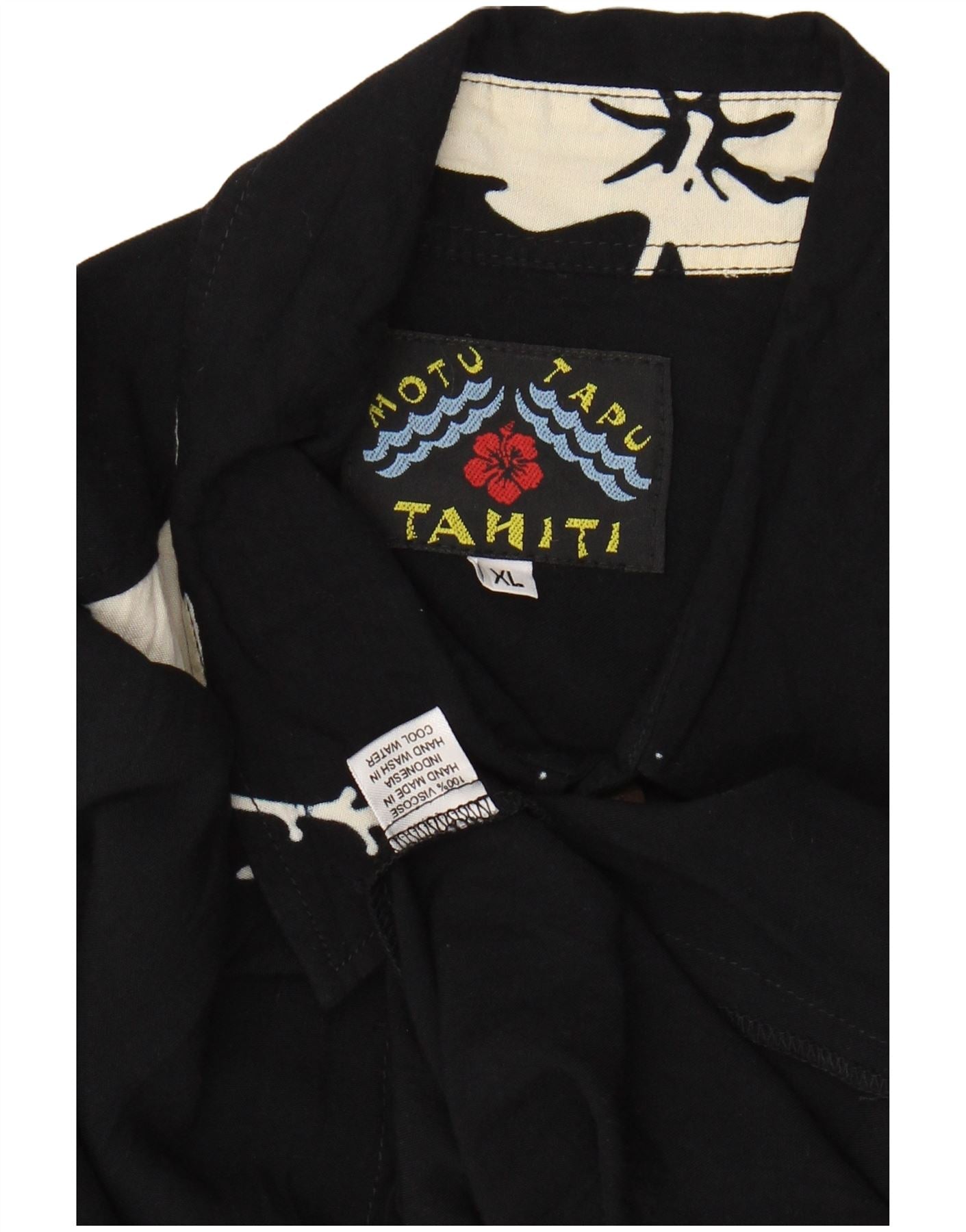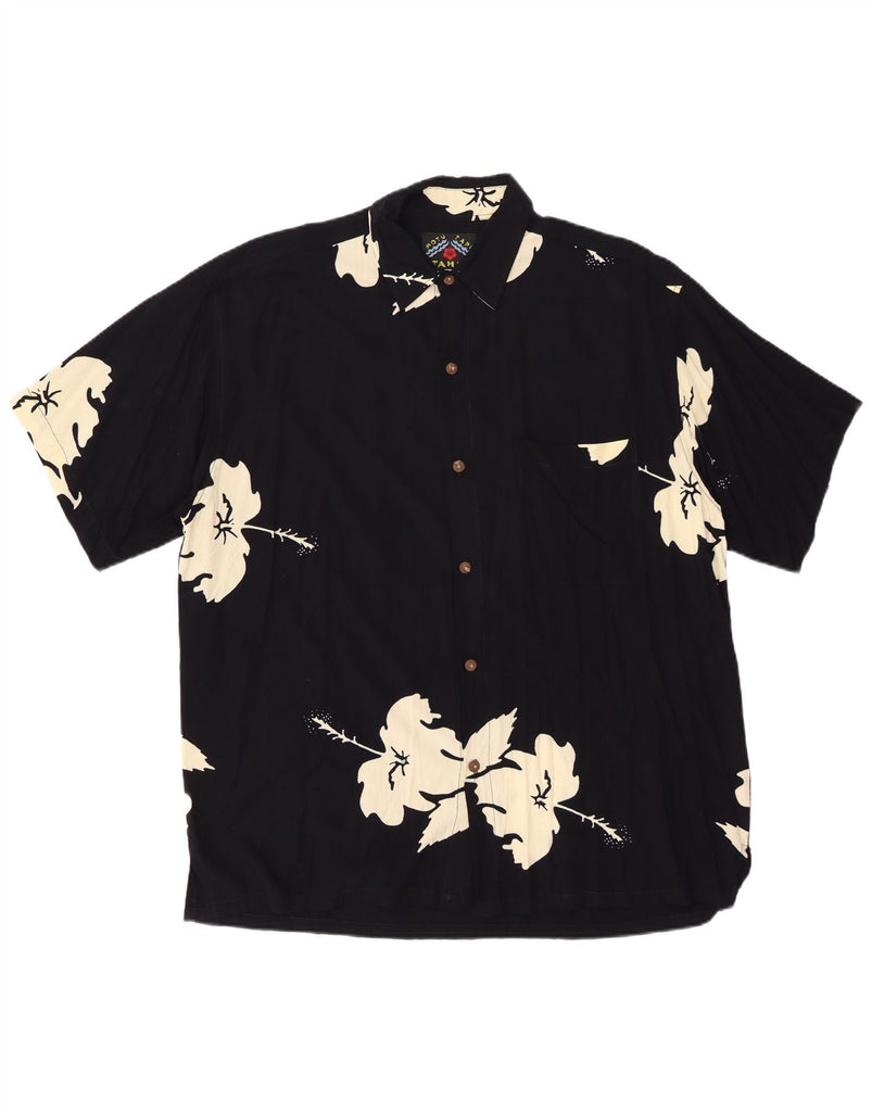 MOTU TAPU TAHITI Camisa Manga Corta Hombre XL Viscosa Floral Negro