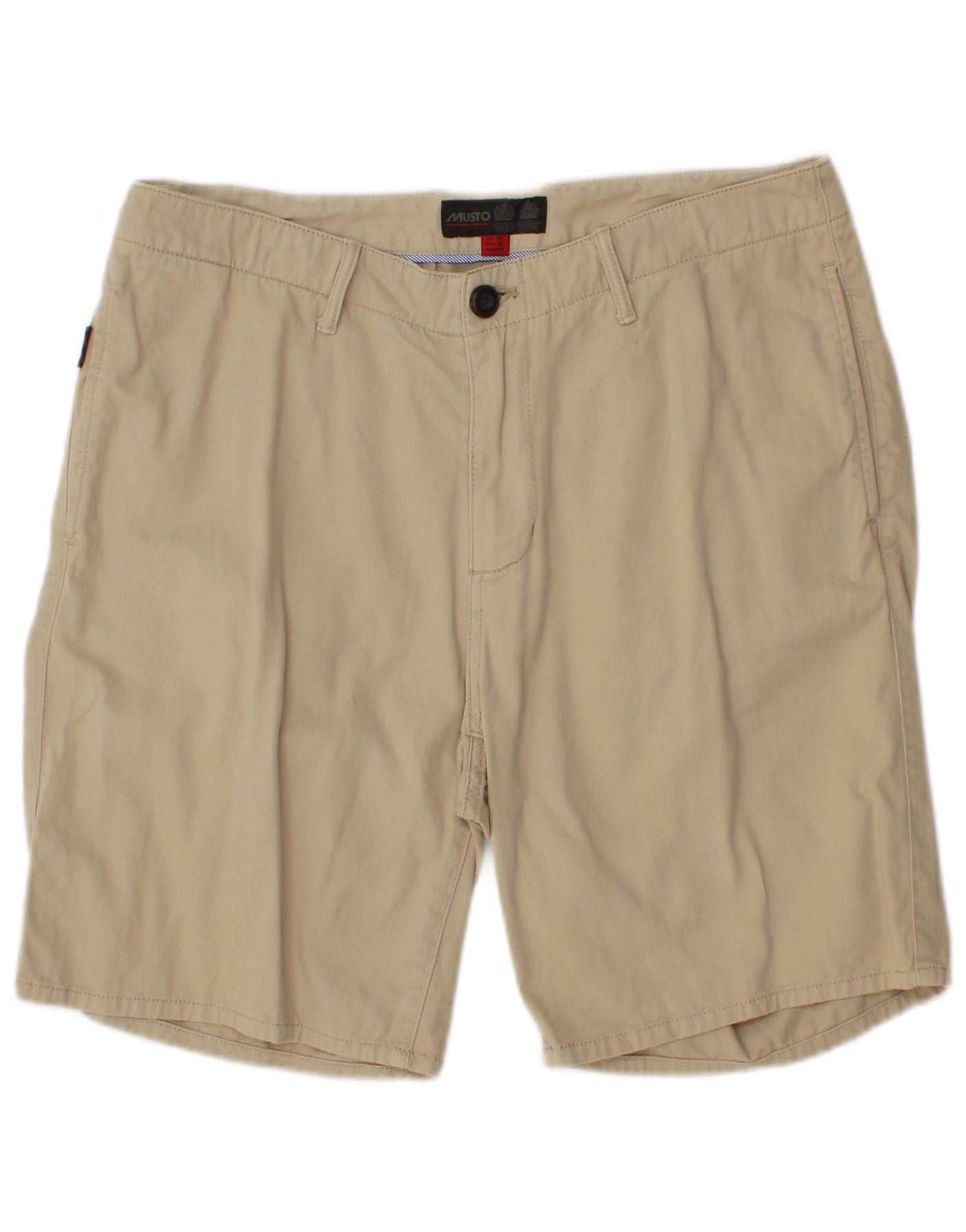 - AI Description: These Musto mens Chino Shorts are crafted from 100 percent woven cotton, offering a durable yet comfortable feel. The versatile beige colour ensures easy styling. They feature a regular fit with a straight leg for classic comfort. A button closure provides a secure fastening. Practical pockets add functionality to the design, making them ideal for everyday wear.