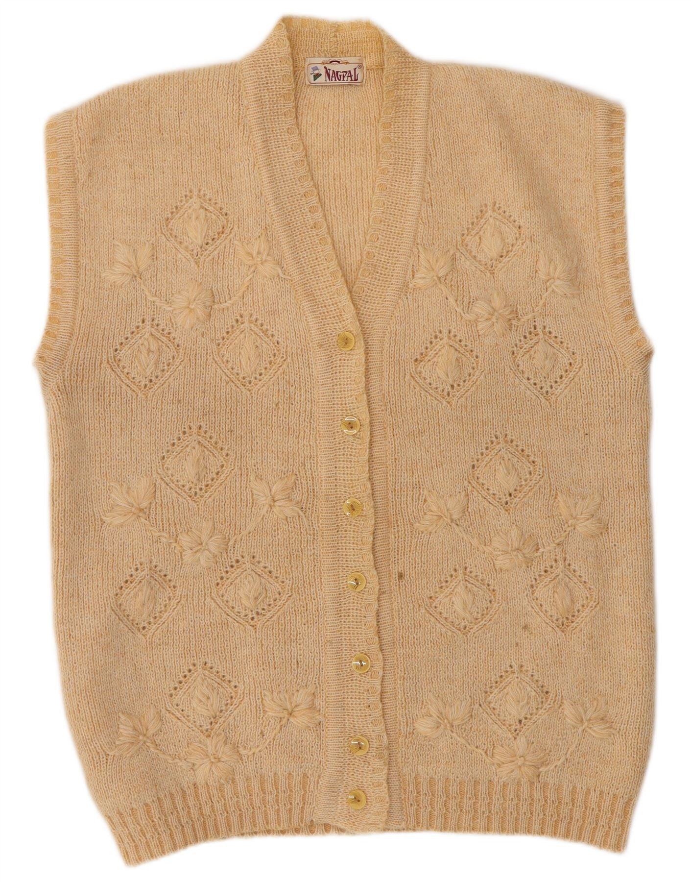 NAGPAL Suéter tipo cárdigan sin mangas para mujer UK 46 Large Beige Floral