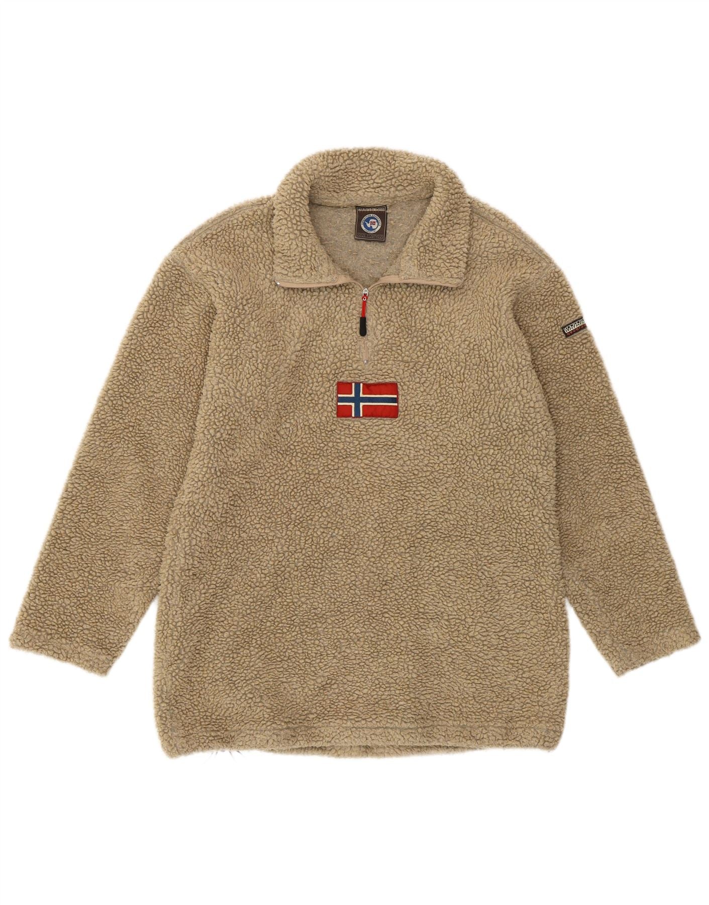 Napapijri Mujer Gráfico Zip Neck Fleece Jumper Large Beige Poliacrílico