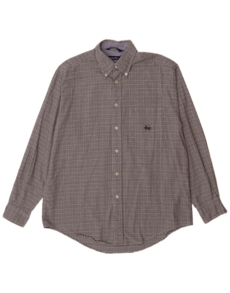 NAUTICA Camisa De Franela Hombre Mediana Azul Marino Pata De Gallo Algodón