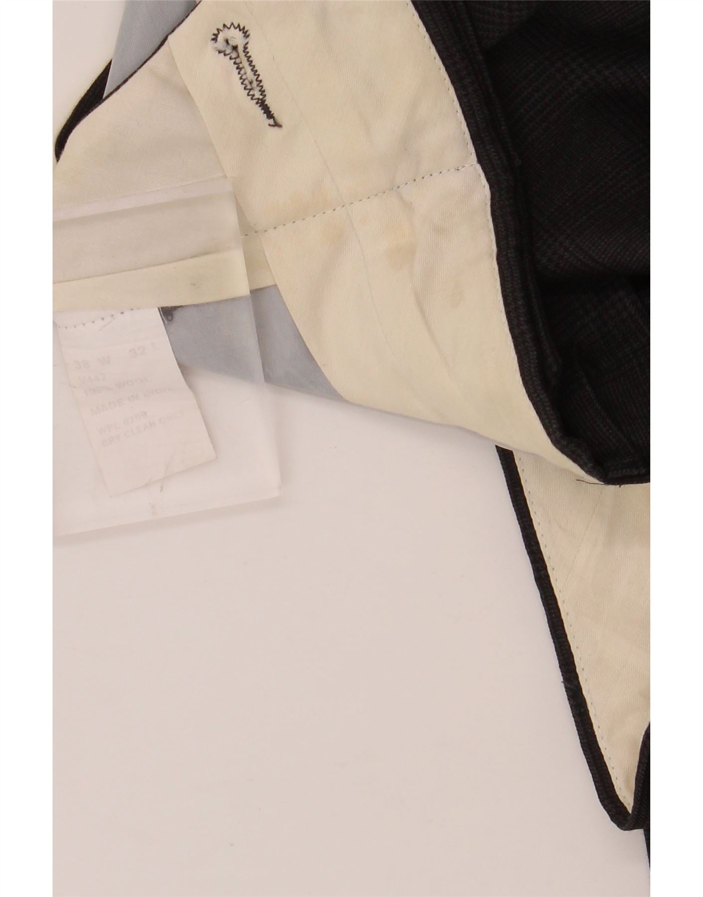 NAUTICA Pantalón de traje con pinzas para hombre W38 L32 Lana a cuadros gris
