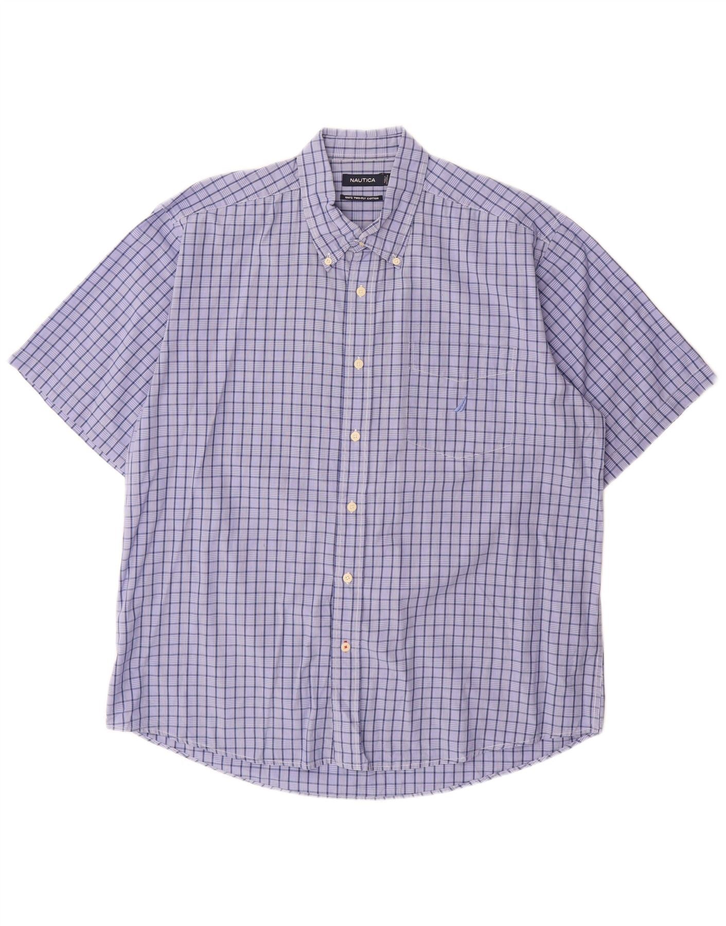 Nautica Camisa Manga Corta Hombre XL Azul Cuadros Algodón