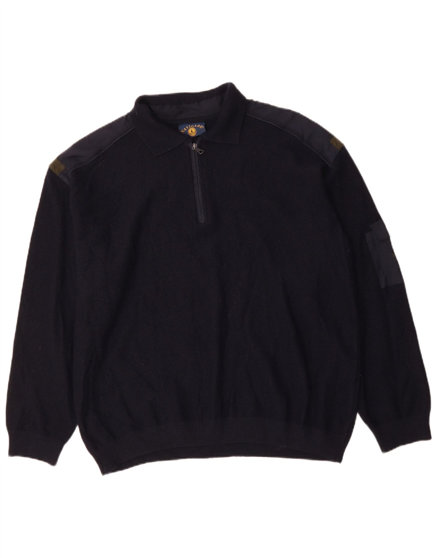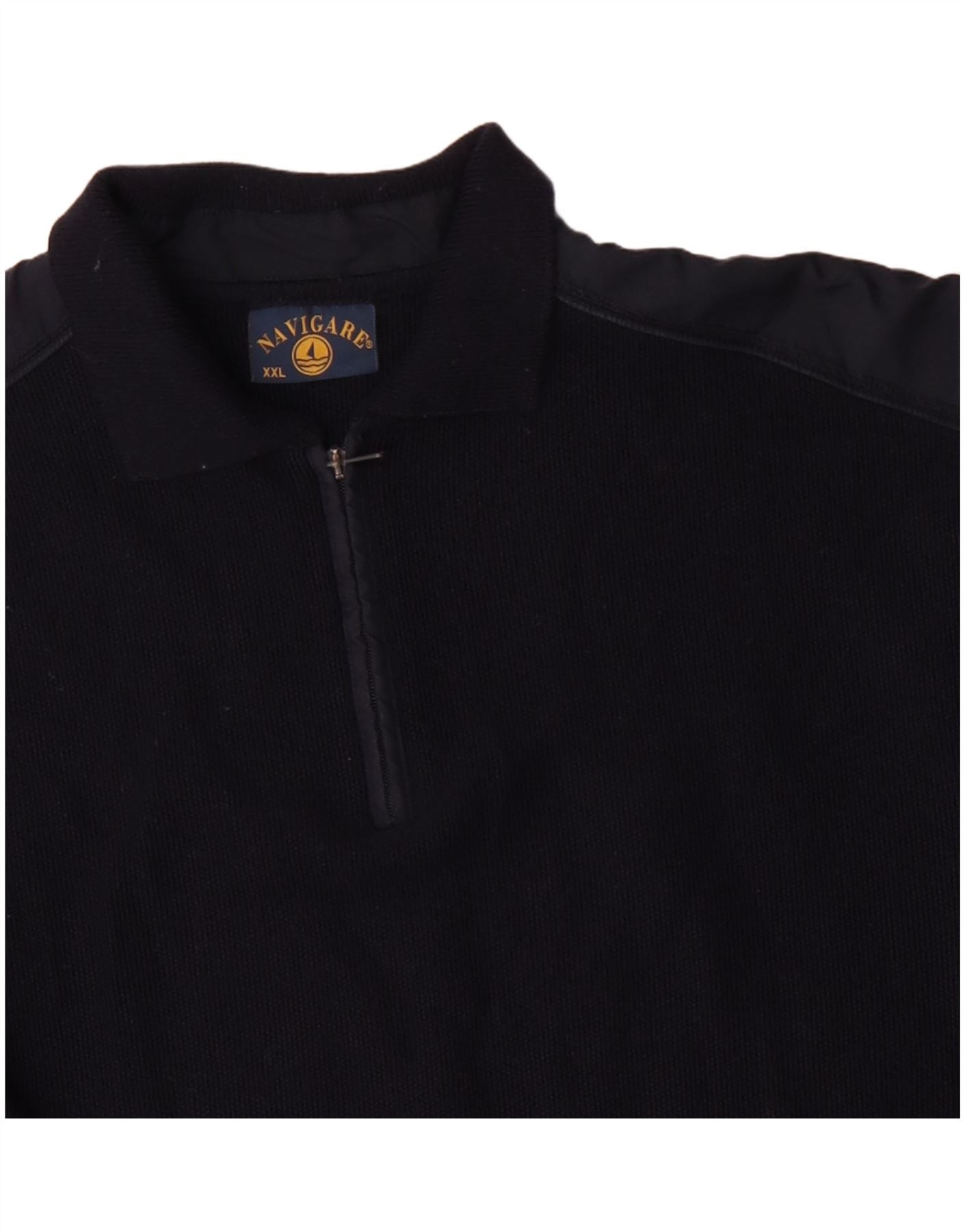 NAVIGARE Suéter tipo polo con cuello con cremallera para hombre 2XL Lana merino azul marino