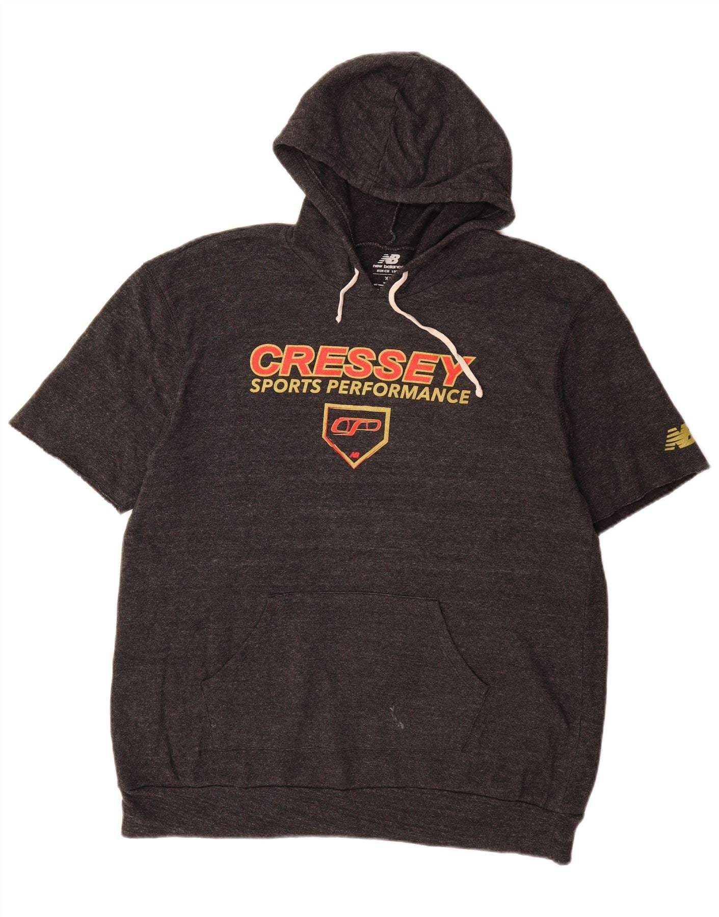 NEW BALANCE Mens Graphic Short Sleeve Hoodie Jumper XL Grey Polyester