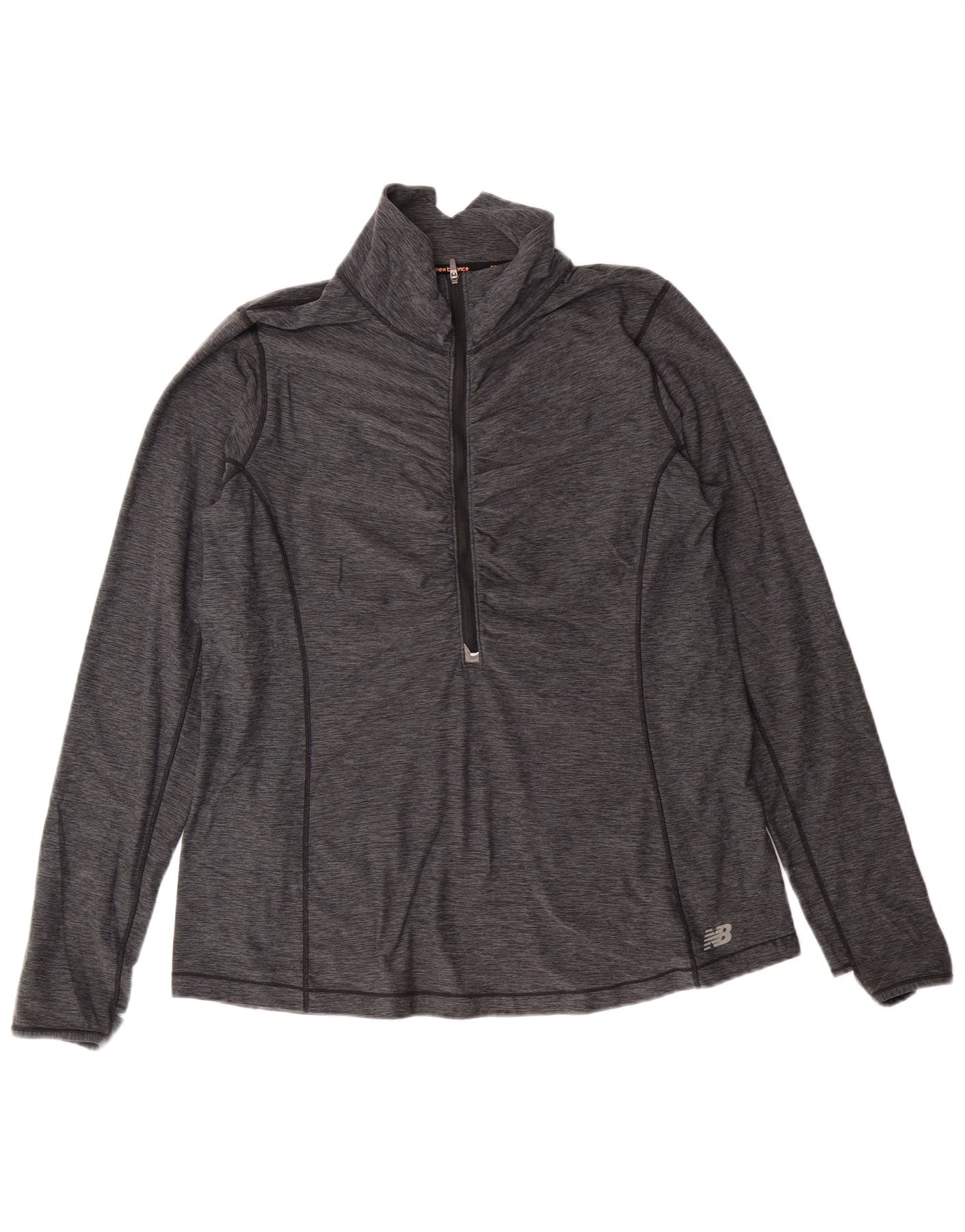 NEW BALANCE Top de chándal con cuello y cremallera para mujer UK 18 XL Gris moteado