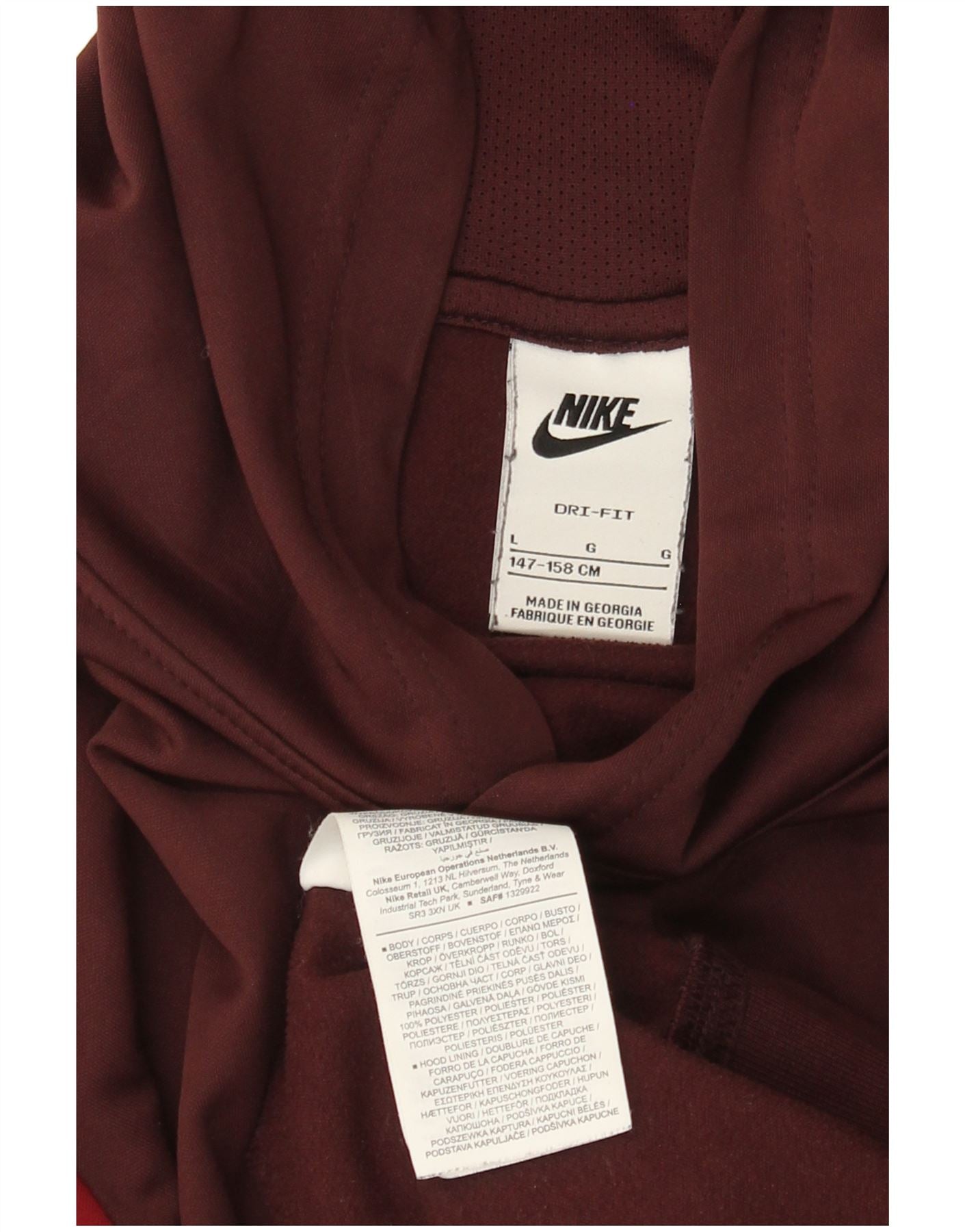 NIKE Sudadera con capucha para niños, talla grande, color burdeos, 12-13 años