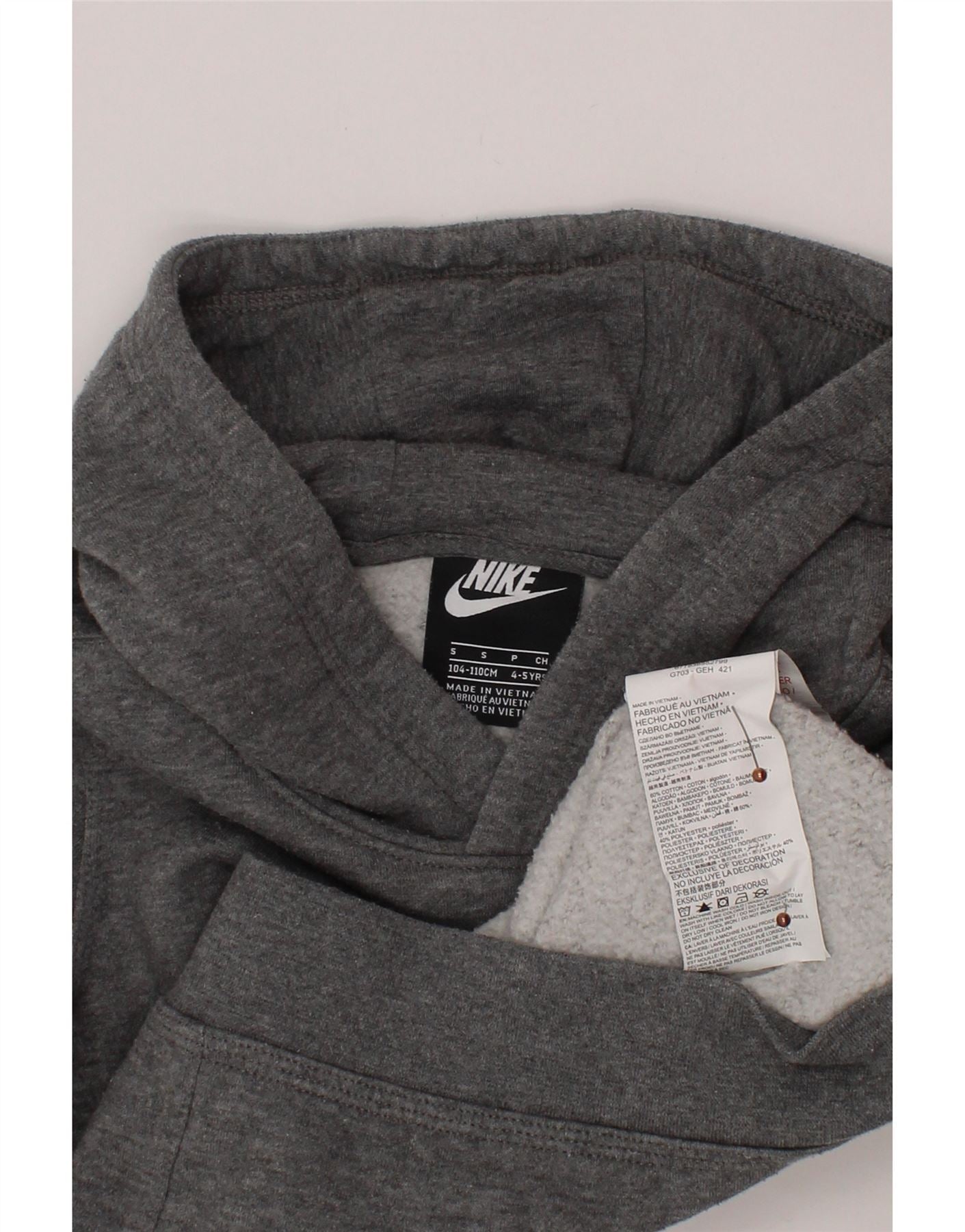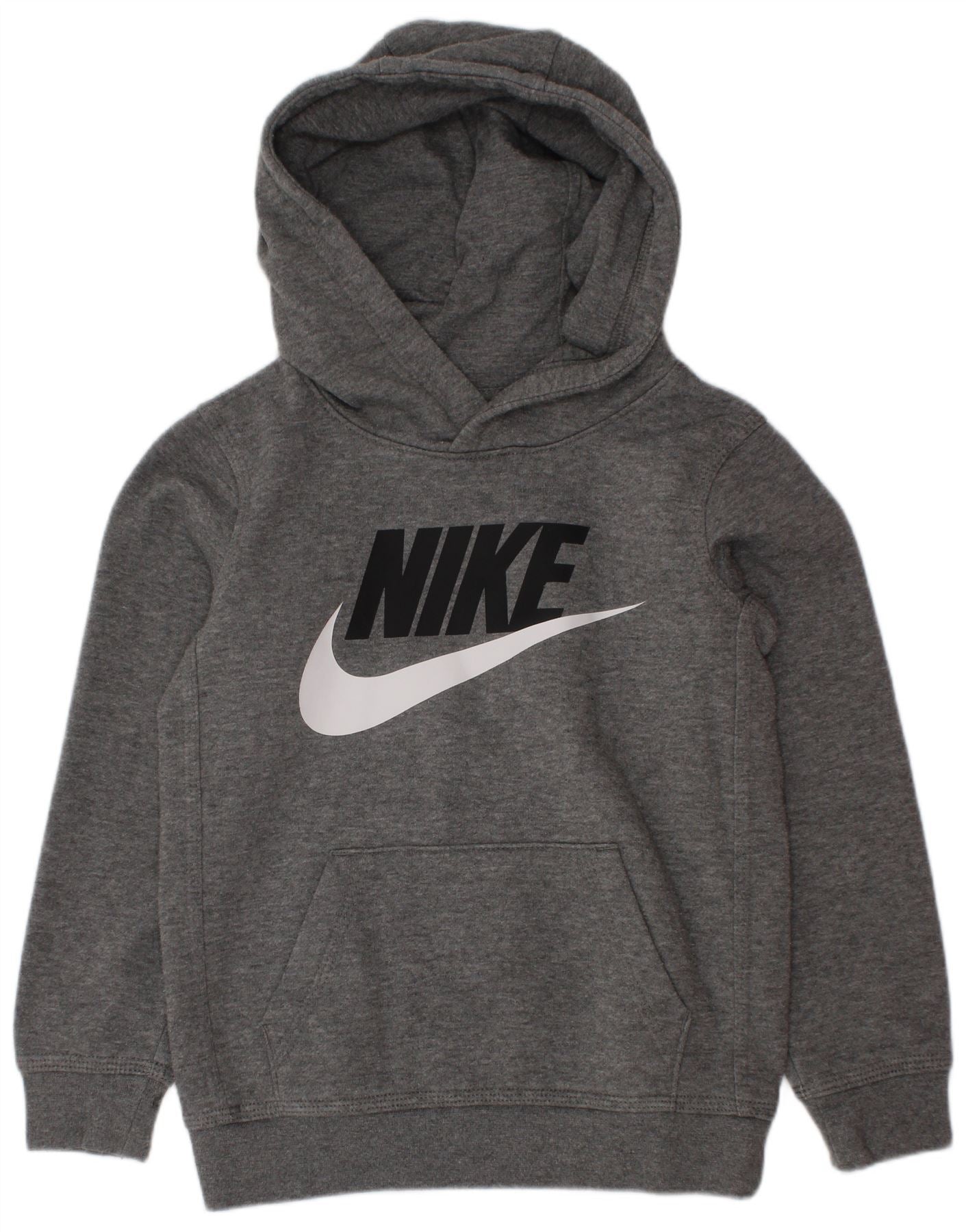 NIKE Sudadera con capucha gráfica para niños de 4 a 5 años, talla pequeña, algodón moteado gris
