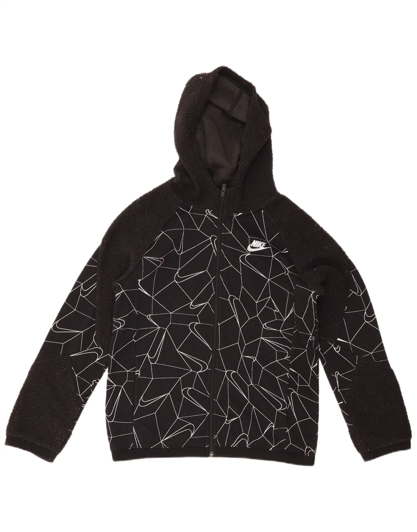 NIKE Sudadera con capucha y cremallera para niños 12-13 años Grande Negro Algodón geométrico
