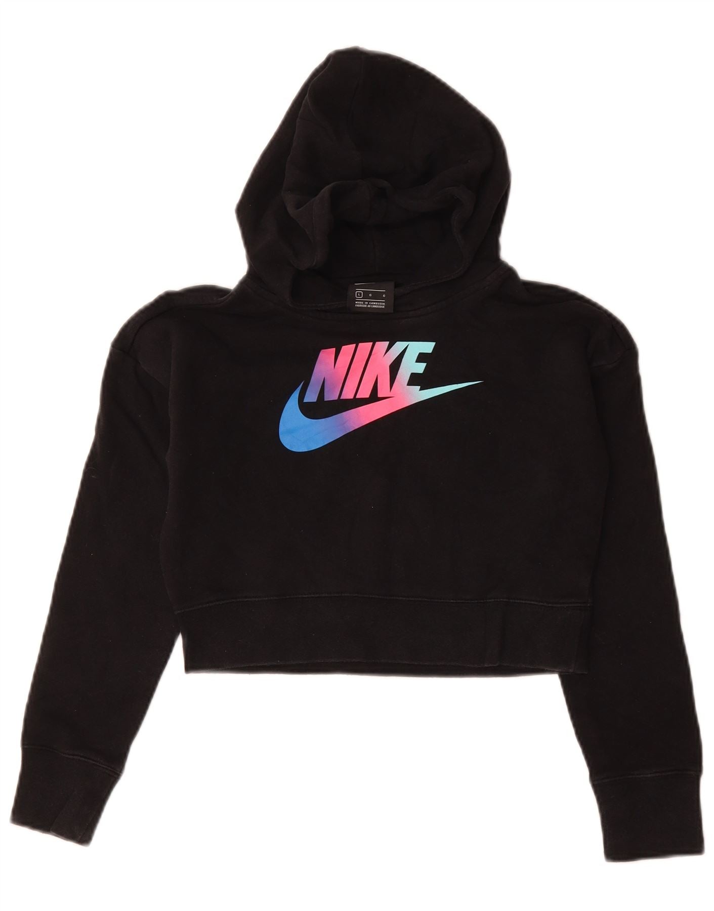NIKE Jersey con capucha y gráfico corto para niñas 12-13 años Grande Algodón negro