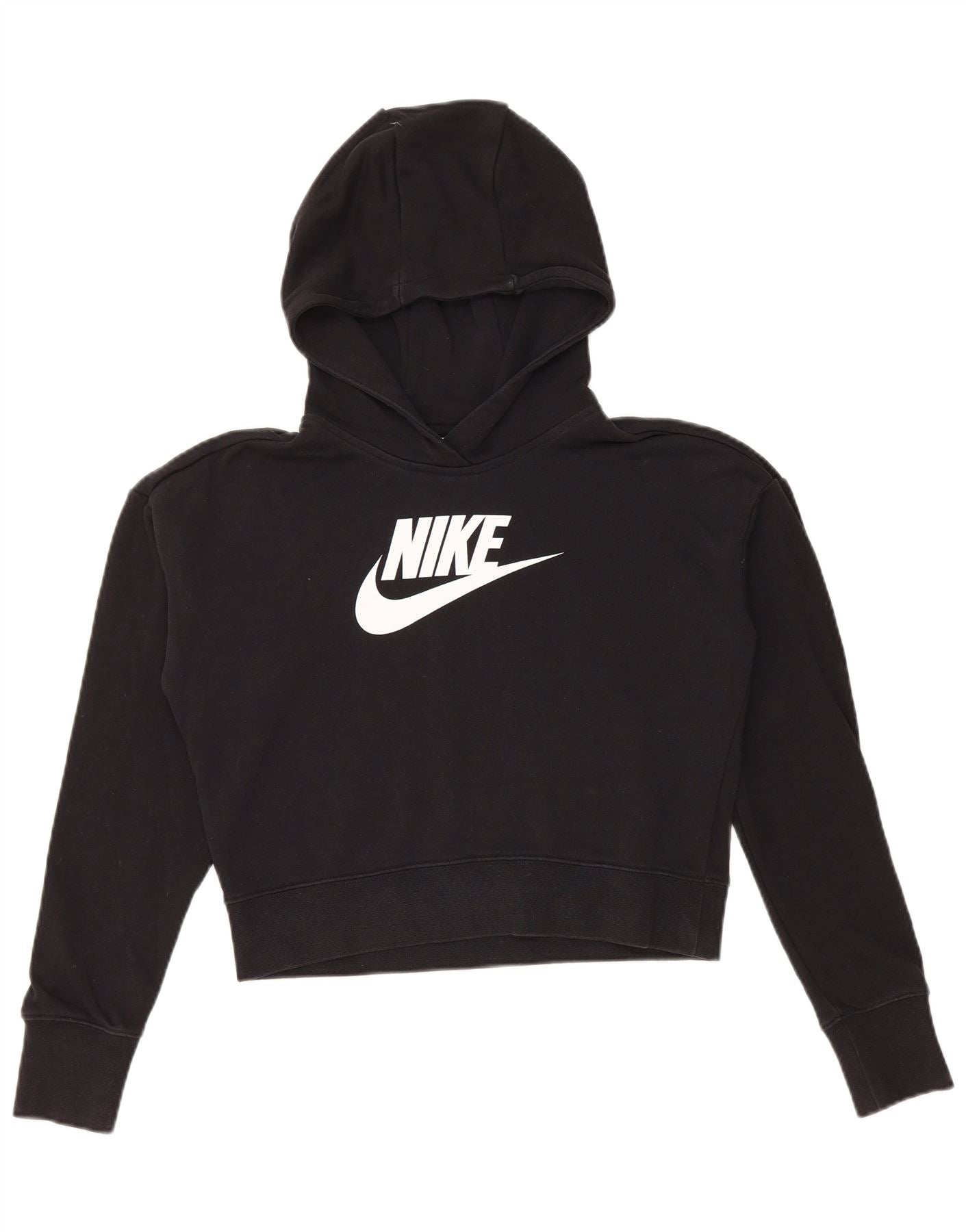 NIKE Sudadera con capucha para niñas Crop Graphic 13-14 años XL Algodón negro