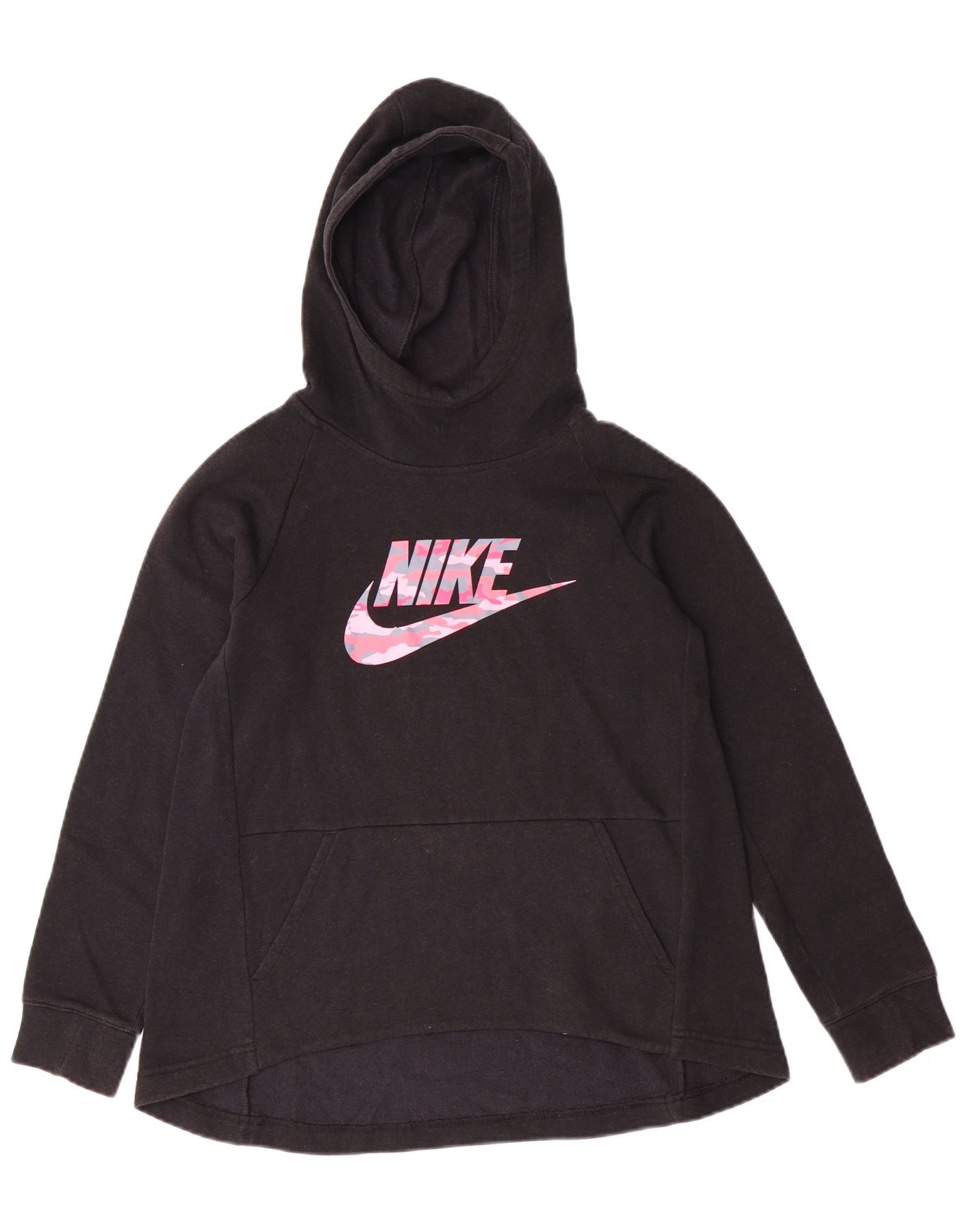 NIKE Sudadera con capucha gráfica para niñas 10-11 años Mediana Negro Algodón