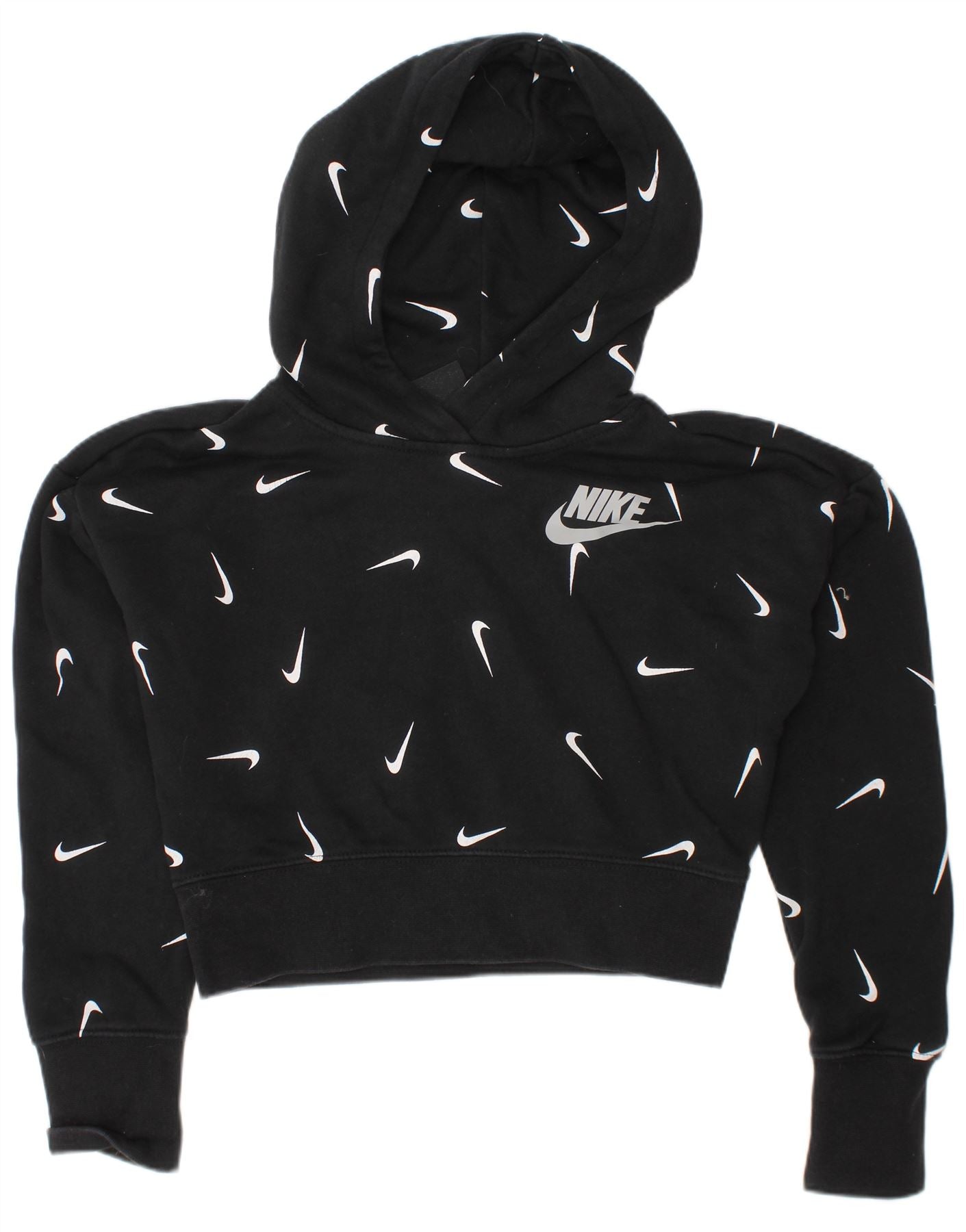 NIKE - Sudadera con capucha para niña, diseño gráfico, ajuste estándar, 8-9 años, talla pequeña, algodón negro