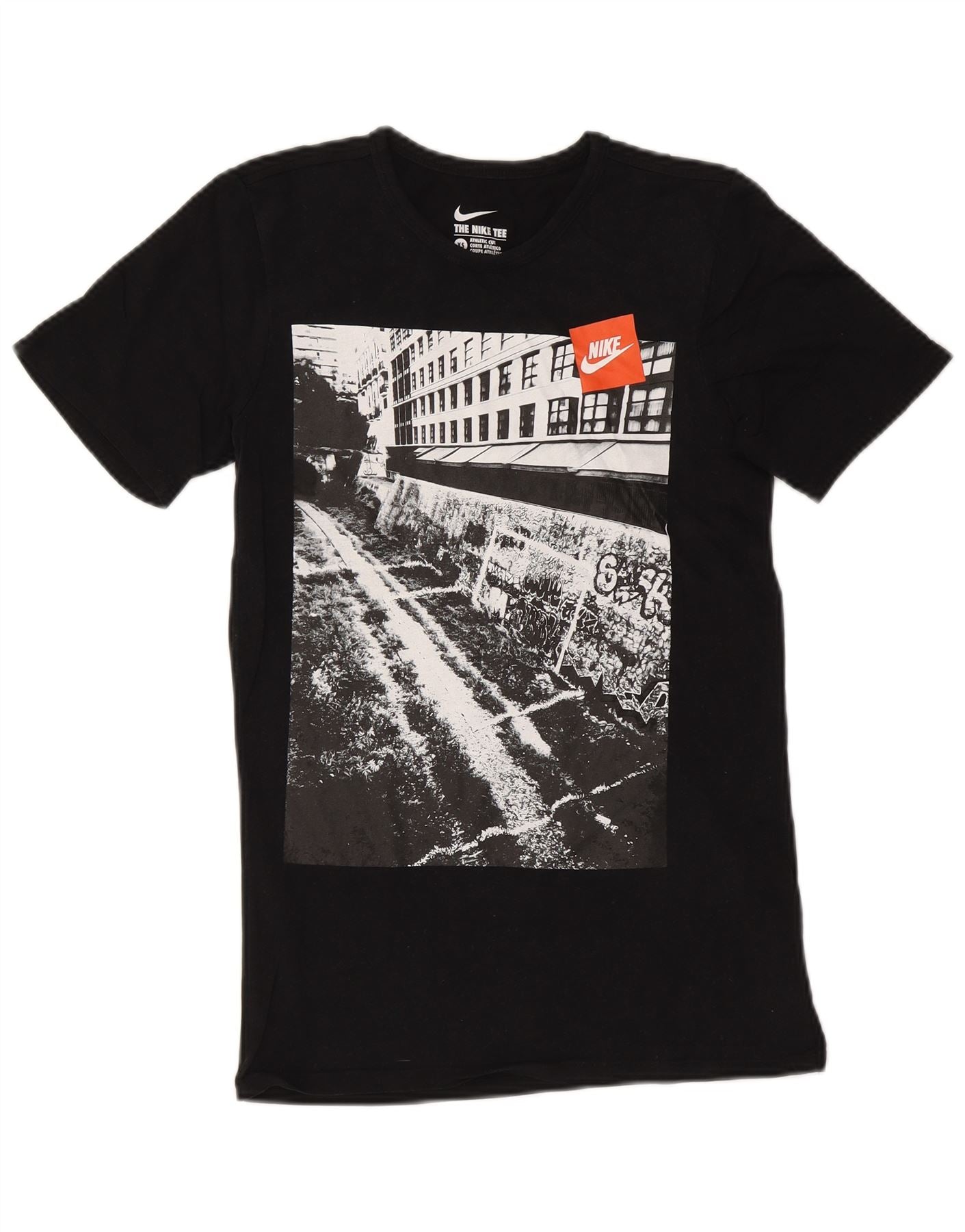NIKE Camiseta gráfica de corte atlético para hombre Top XS Algodón negro