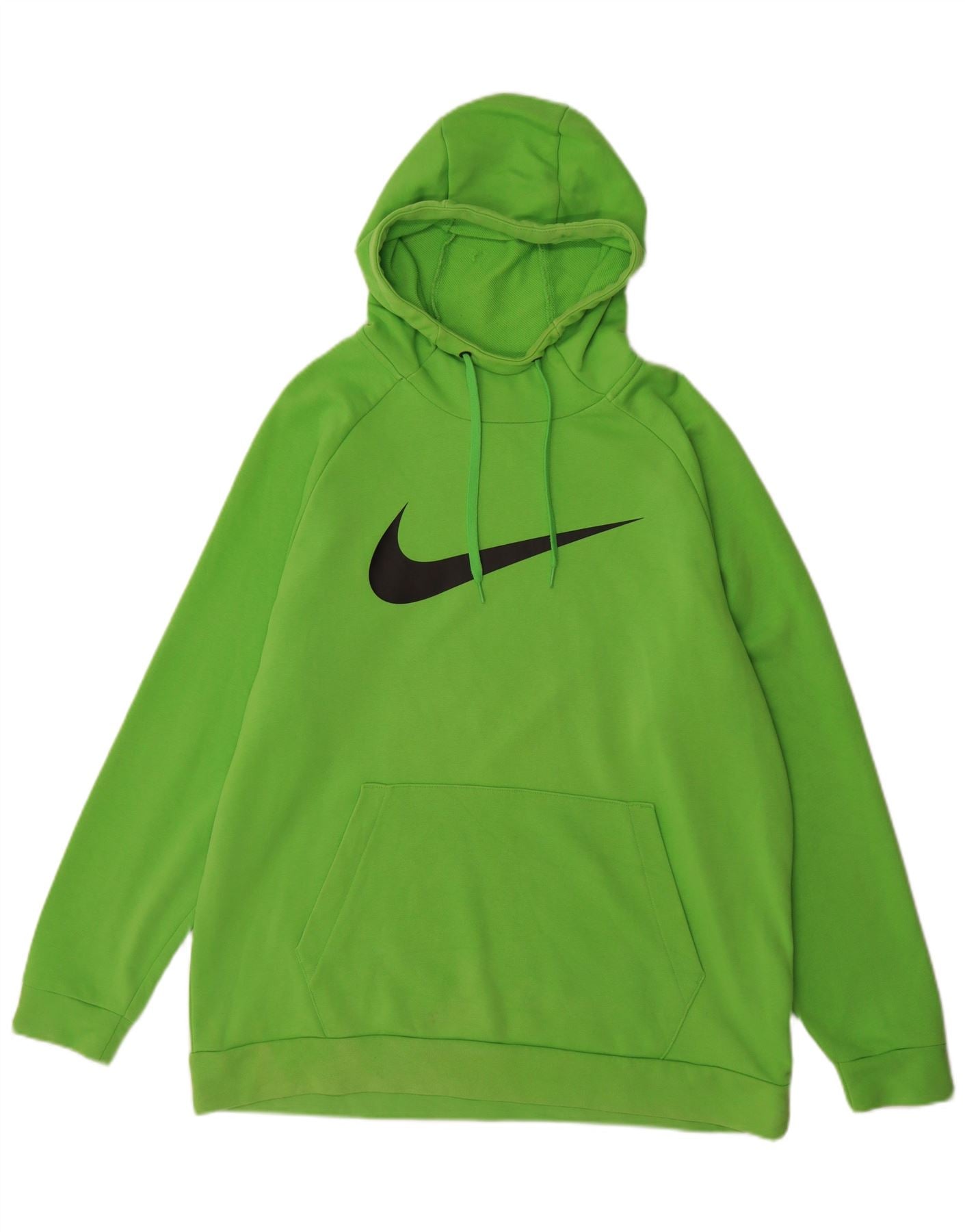 NIKE Mens Dri Fit Graphic Standard Fit Hoodie Jumper Large Green Cotton