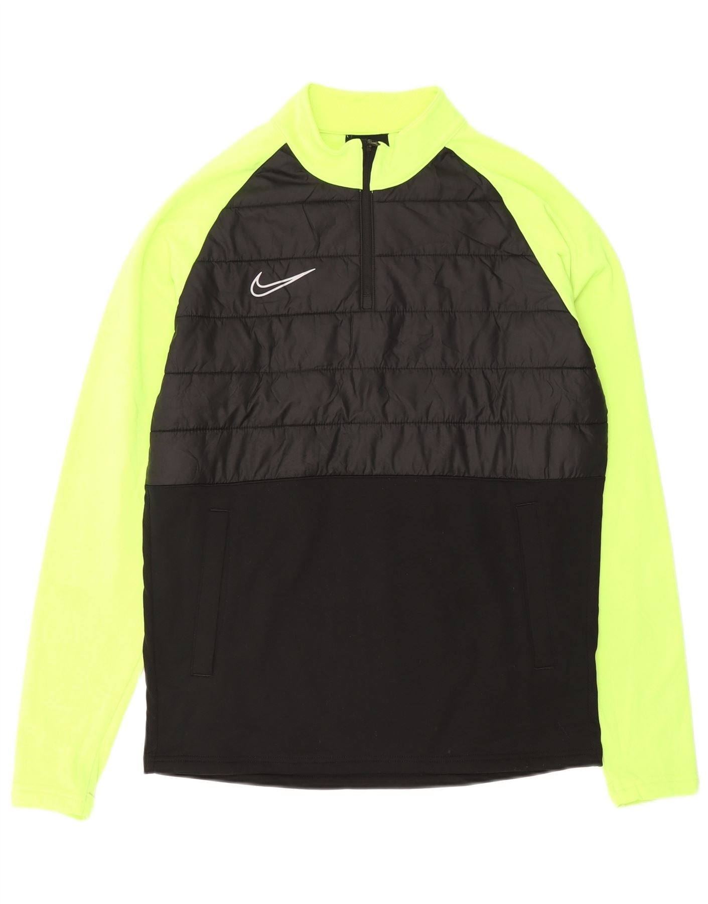NIKE Hombre Dri Fit Zip Neck Pullover Chándal Top Mediano Negro Colorblock