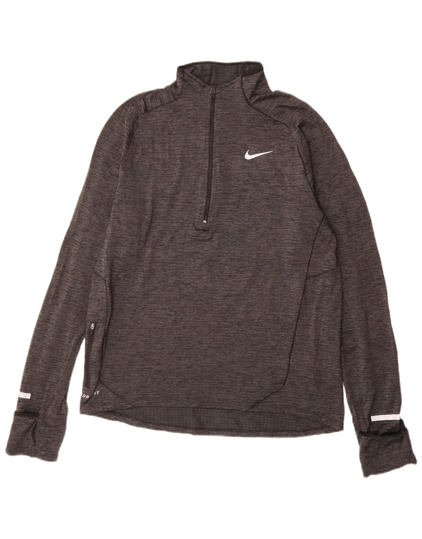 NIKE Top de chándal Dri Fit con cremallera y cuello para hombre, color gris medio moteado