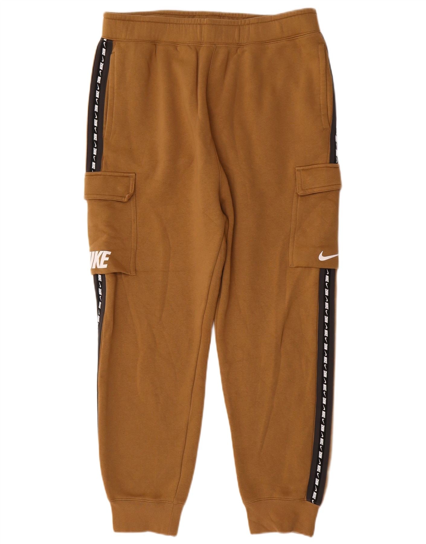 NIKE Mens Graphic Cargo Tracksuit Trousers Joggers Large Beige Colourblock